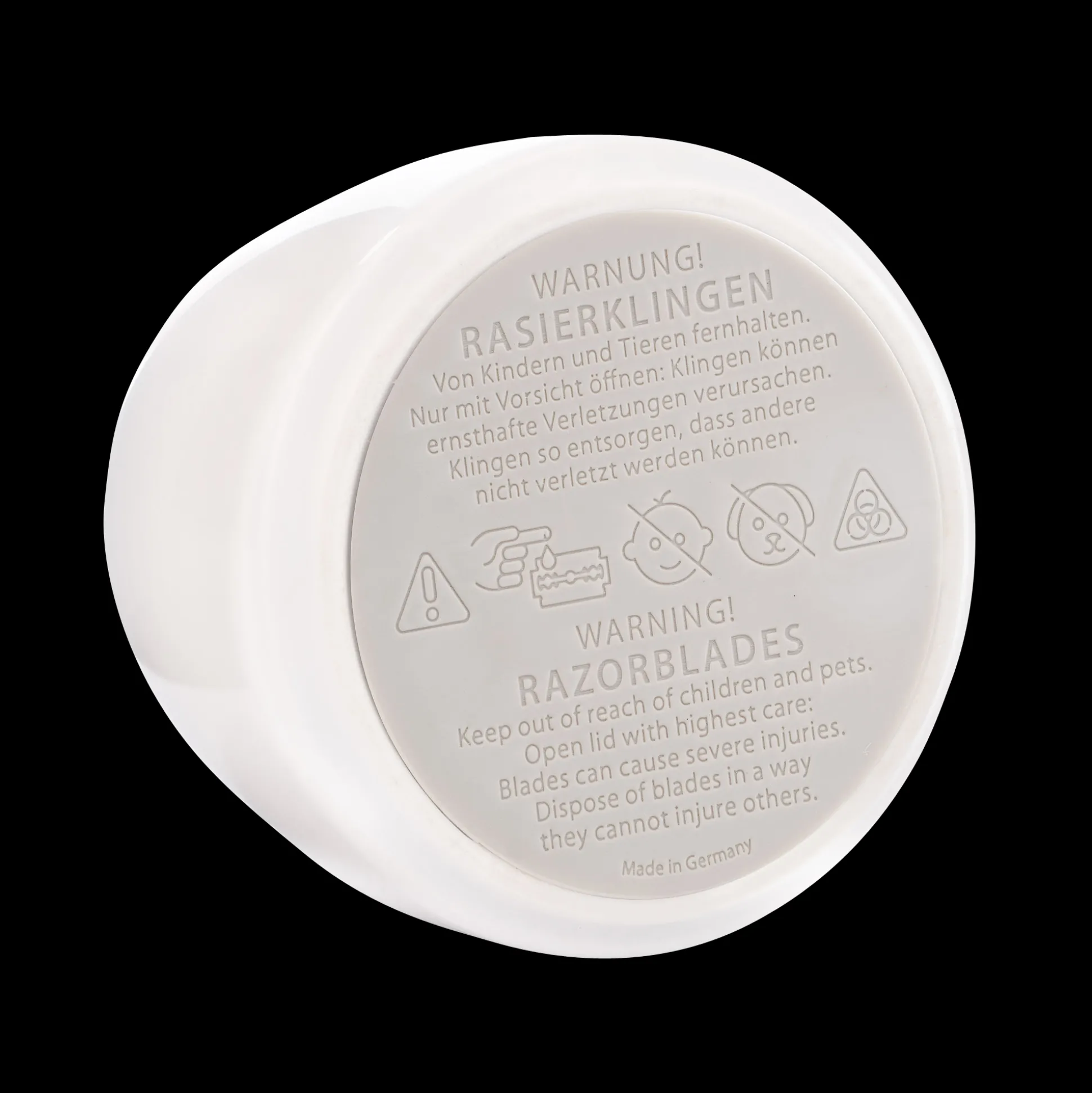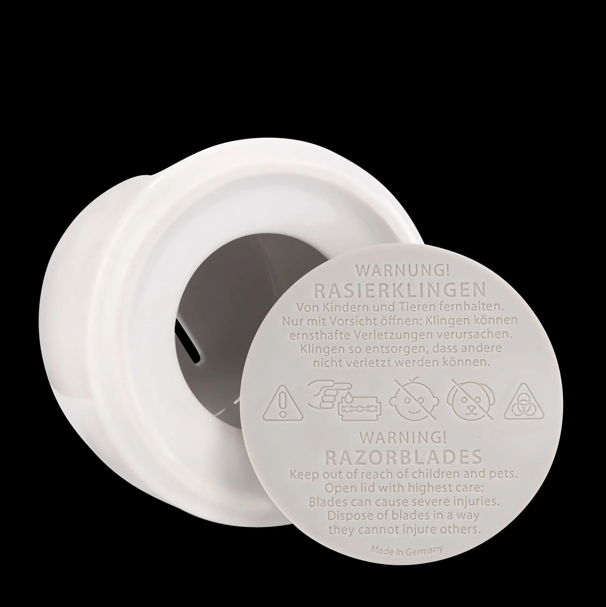 Der Klingensammler aus Porzellan entsorgt Klingen stilvoll und sicher. Über Jahre hinweg können gebrauchte Rasierklingen in der Porzellandose gesammelt werden und stellen im Haushalt keine Verletzungsgefahr mehr dar. Bei Bedarf kann der Klingensammler durch eine Öffnung im Boden entleert werden. In Form und Material eine harmonische Ergänzung zu unseren Rasiertiegeln.