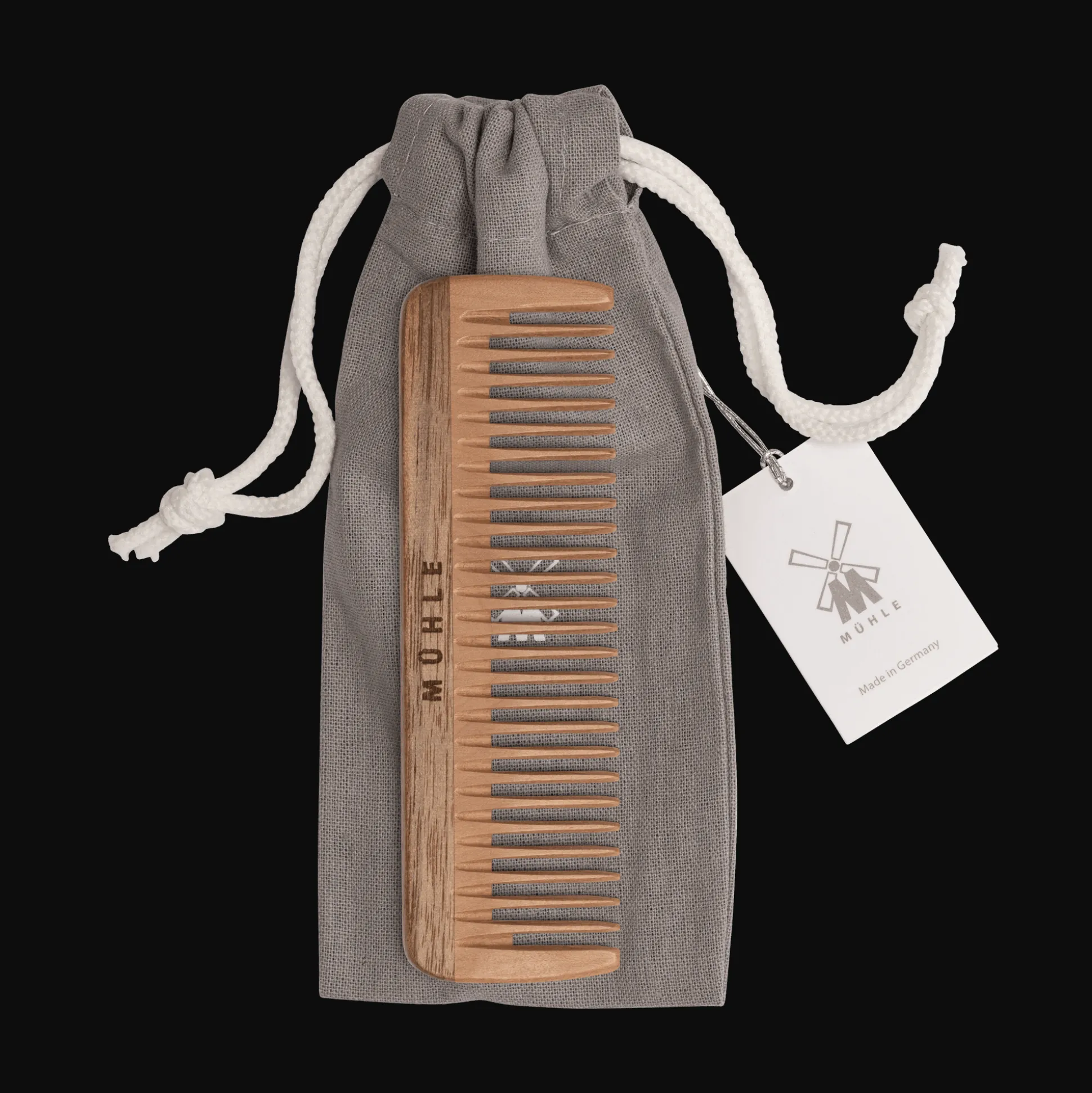 Pflegehinweis: Vermeiden Sie längeren Kontakt zu Wasser und extreme Temperaturen. Ablagerungen können gelegentlich mit mildem Shampoo entfernt werden. Anschließend den Kamm mit einem Handtuch abtrocknen. Ein Tropfen Oliven- oder Pflegeöl pflegt die Oberfläche und lässt das Holz natürlich glänzen.