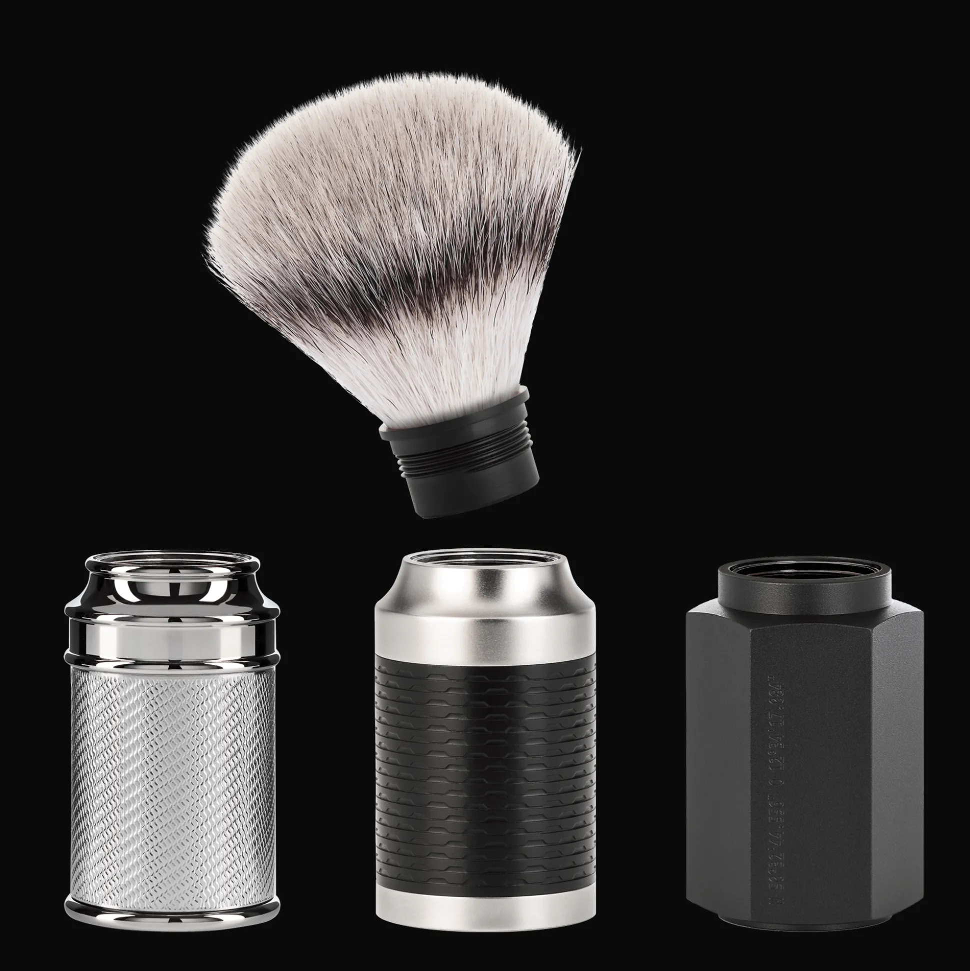 Diese langlebige Kunstfaser in Premiumqualität ist eine weltweite Innovation und unser Beweis, dass die Kunst die Natur übertreffen kann. Die auch für Veganer geeigneten, synthetisch produzierten Haare sind sehr pflegeleicht und trocknen rascher als jedes Naturmaterial. Die Fasern werden von Hand verarbeitet und sind an den Spitzen besonders weich. Gleichzeitig ist der untere Pinselbereich fester und bietet selbst im nassen Zustand genügend Rückgrat für einen angenehmen Massageeffekt. Zudem garantiert Silvertip Fibre® auch bei Kleinstmengen an Rasierseife oder -creme einen üppigen Schaum.