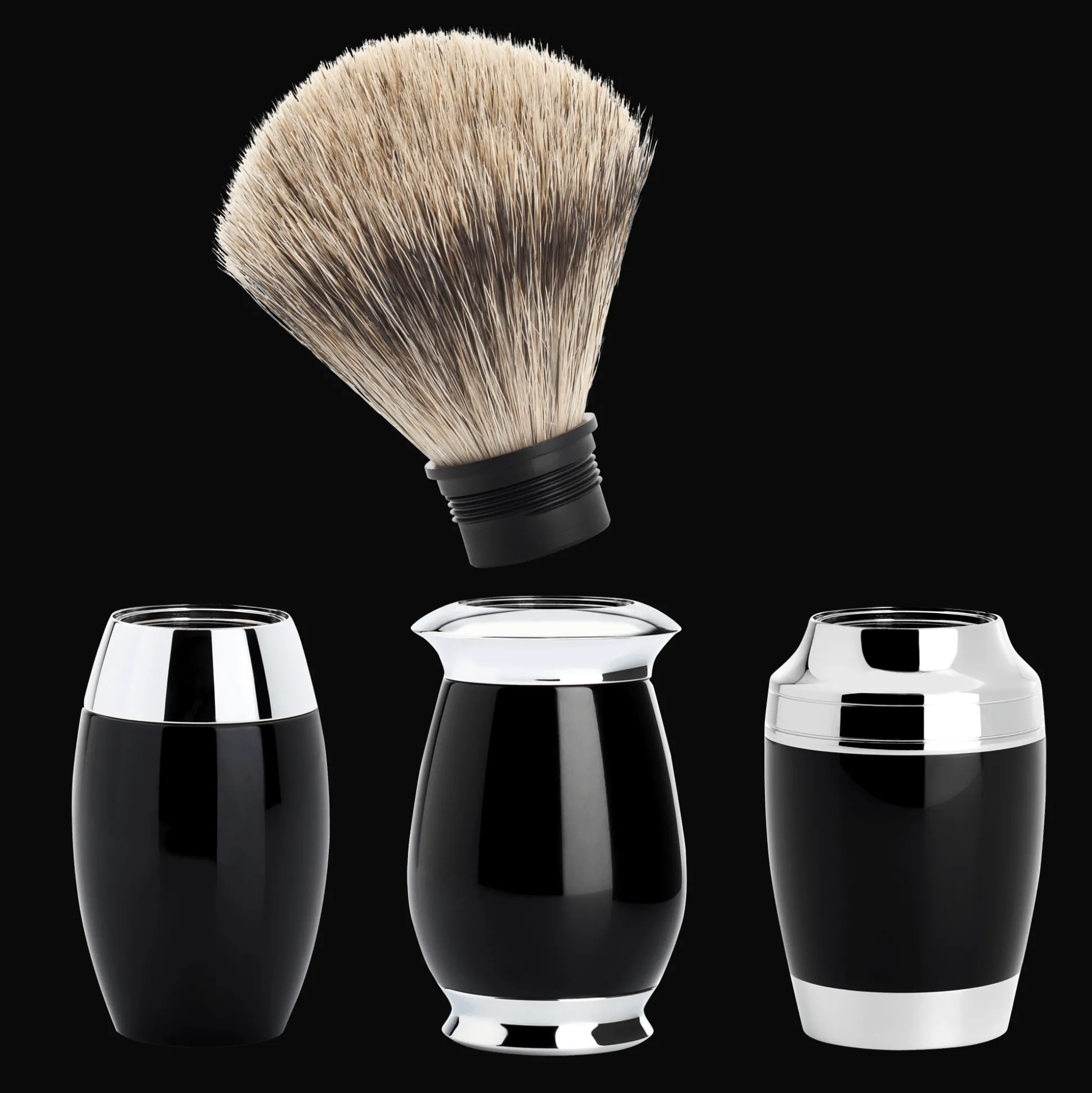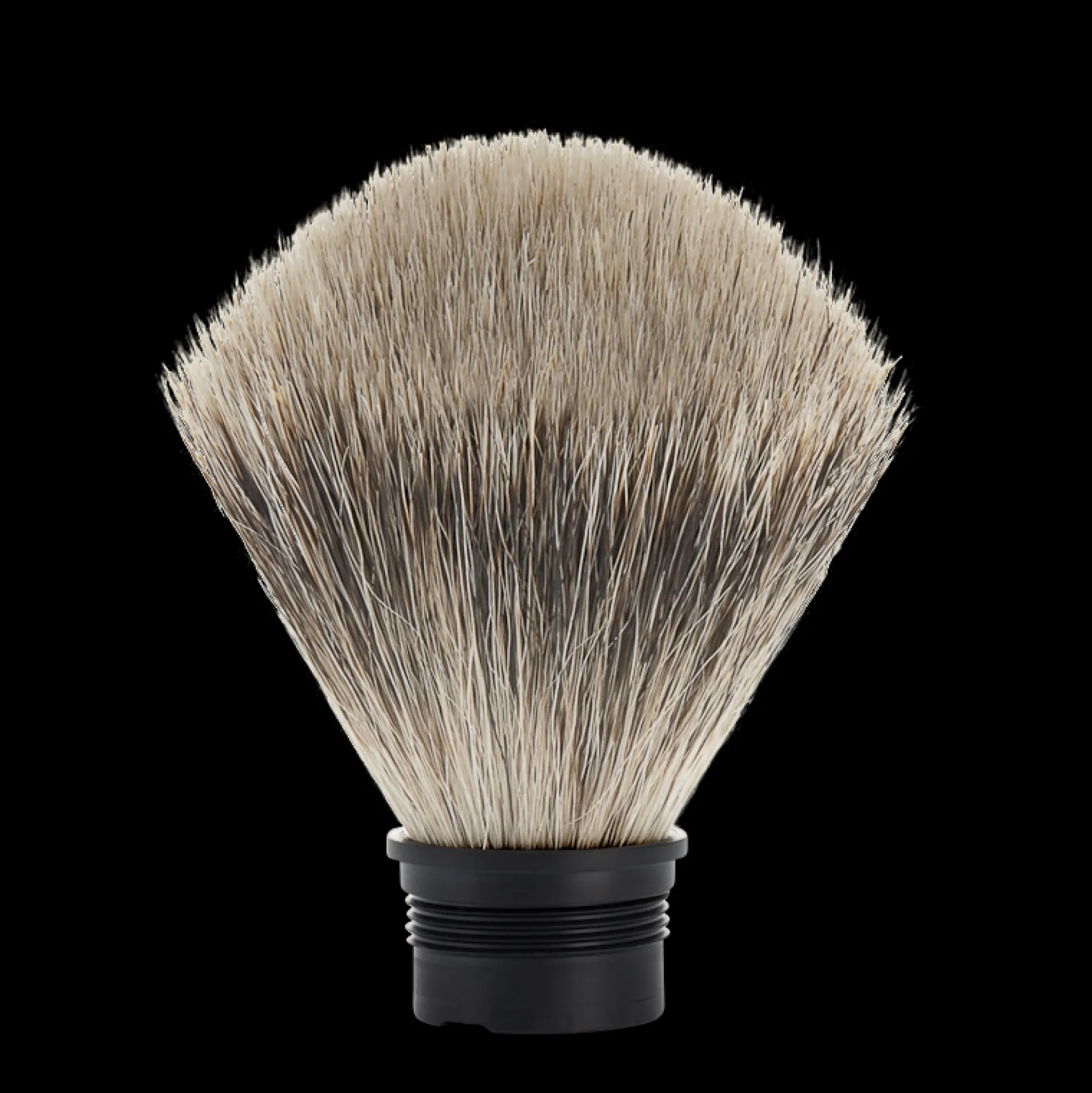 Diese Qualität kommt dem Silberspitz Dachszupf nahe, wobei das Haar ein wenig fester ist. Sein hellgraues Farbspiel umfasst den für hohe Dachshaarqualitäten typischen dunklen Streifen. Das Naturmaterial wird in der Manufaktur MÜHLE sorgfältig nach höchsten Standards in Form gebracht und bei Bedarf an der Spitze leicht getrimmt, um die runde Silhouette des Pinselkopfs zu erzielen. Ideal für Männer, welche die Weichheit des Dachshaars in Kombination mit einem leichten Massageeffekt schätzen.