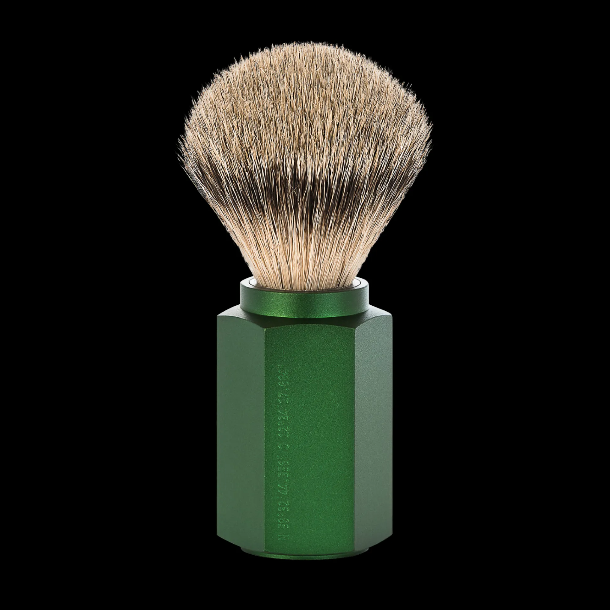 Gekonnt anecken lässt sich mit der Serie HEXAGON, die in Zusammenarbeit mit dem Berliner Designer Mark Braun entstand. Das sechseckige Design ist eine Hommage an die archetypische Form von Werkzeugen oder Schreibgeräten. Es verspricht Ergonomie, Griffigkeit, Funktionalität. Das matte Finish in den Farben Graphite und Forest wird ergänzt durch einen puristisch anmutenden Silberton. Den perfekten Kontrapunkt dazu setzen die hochglänzenden, verchromten Oberflächen von Rasierhobel und Halter. HEXAGON: Design von Welt. Made in Stützengrün.