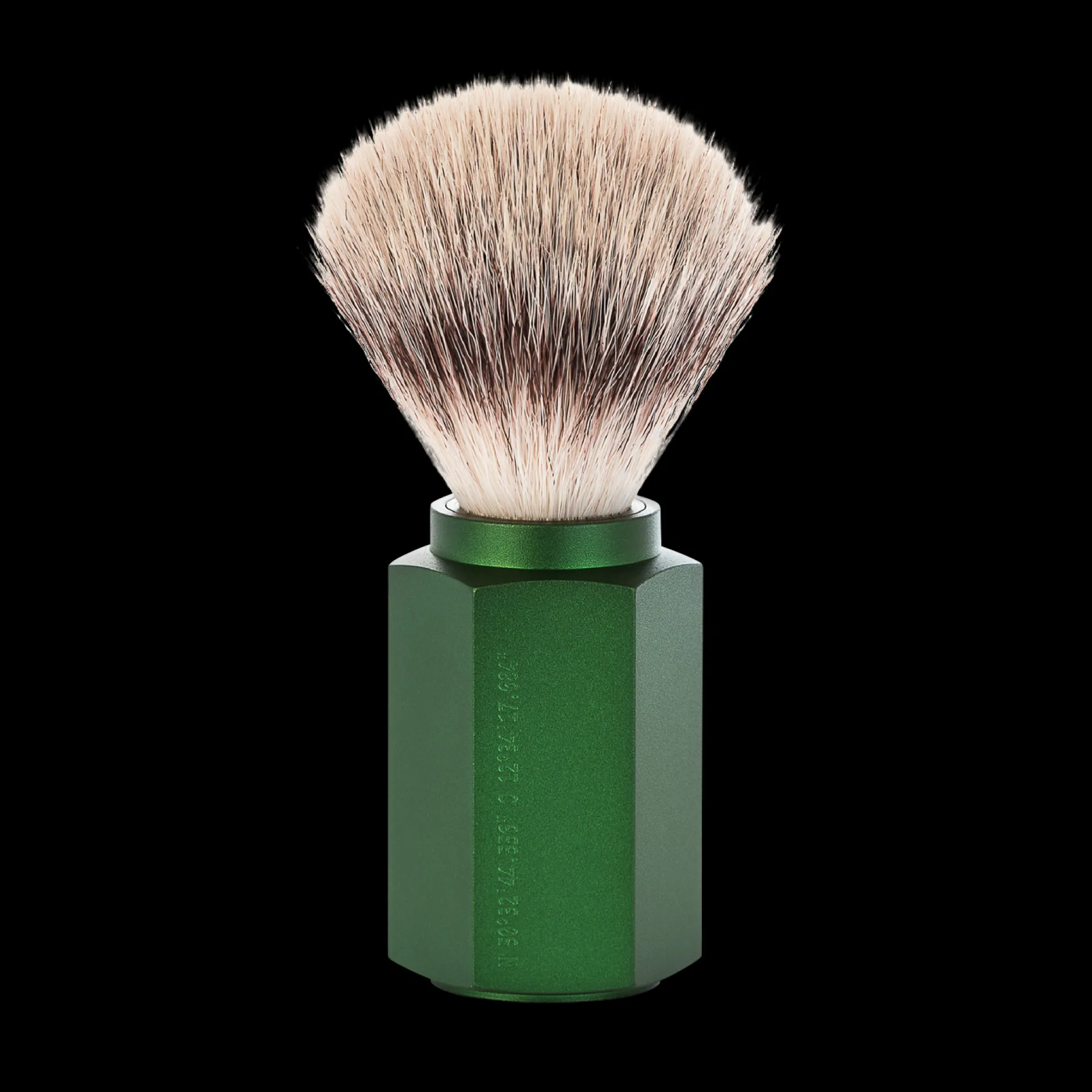 Diese langlebige Kunstfaser in Premiumqualität ist eine weltweite Innovation und unser Beweis, dass die Kunst die Natur übertreffen kann. Die auch für Veganer geeigneten, synthetisch produzierten Haare sind sehr pflegeleicht und trocknen rascher als jedes Naturmaterial. Die Fasern werden von Hand verarbeitet und sind an den Spitzen besonders weich. Gleichzeitig ist der untere Pinselbereich fester und bietet selbst im nassen Zustand genügend Rückgrat für einen angenehmen Massageeffekt. Zudem garantiert Silvertip Fibre® auch bei Kleinstmengen an Rasierseife oder -creme einen üppigen Schaum.