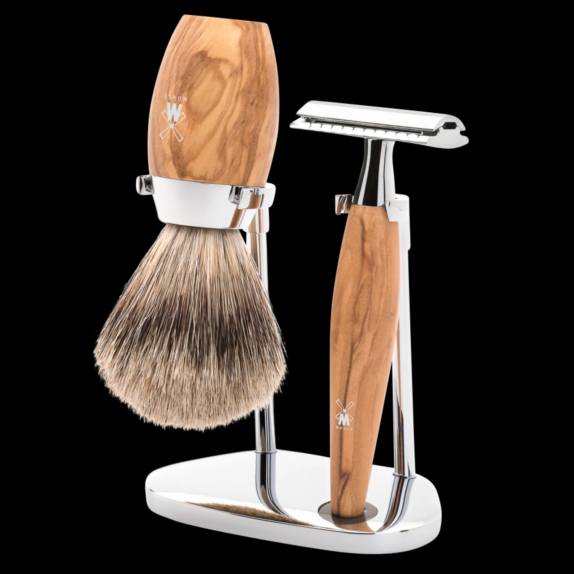 Für alle, die sich in der Welt zuhause fühlen, ist der KOSMOpolit aus dem Hause MÜHLE der richtige Wegbegleiter. Die klare Formensprache der Linie KOSMO wird akzentuiert durch einen markanten Chromhals. Charaktervolle Werkstoffe wie die jahrtausendealte Mooreiche oder ausdrucksstarkes Olivenholz verleihen dieser modernen Designserie das besondere Etwas. Für Kosmopoliten mit einem Faible für Schwarz gibt es Pinsel, Rasierer oder Hobel auch in der klassischen Farbvariante.