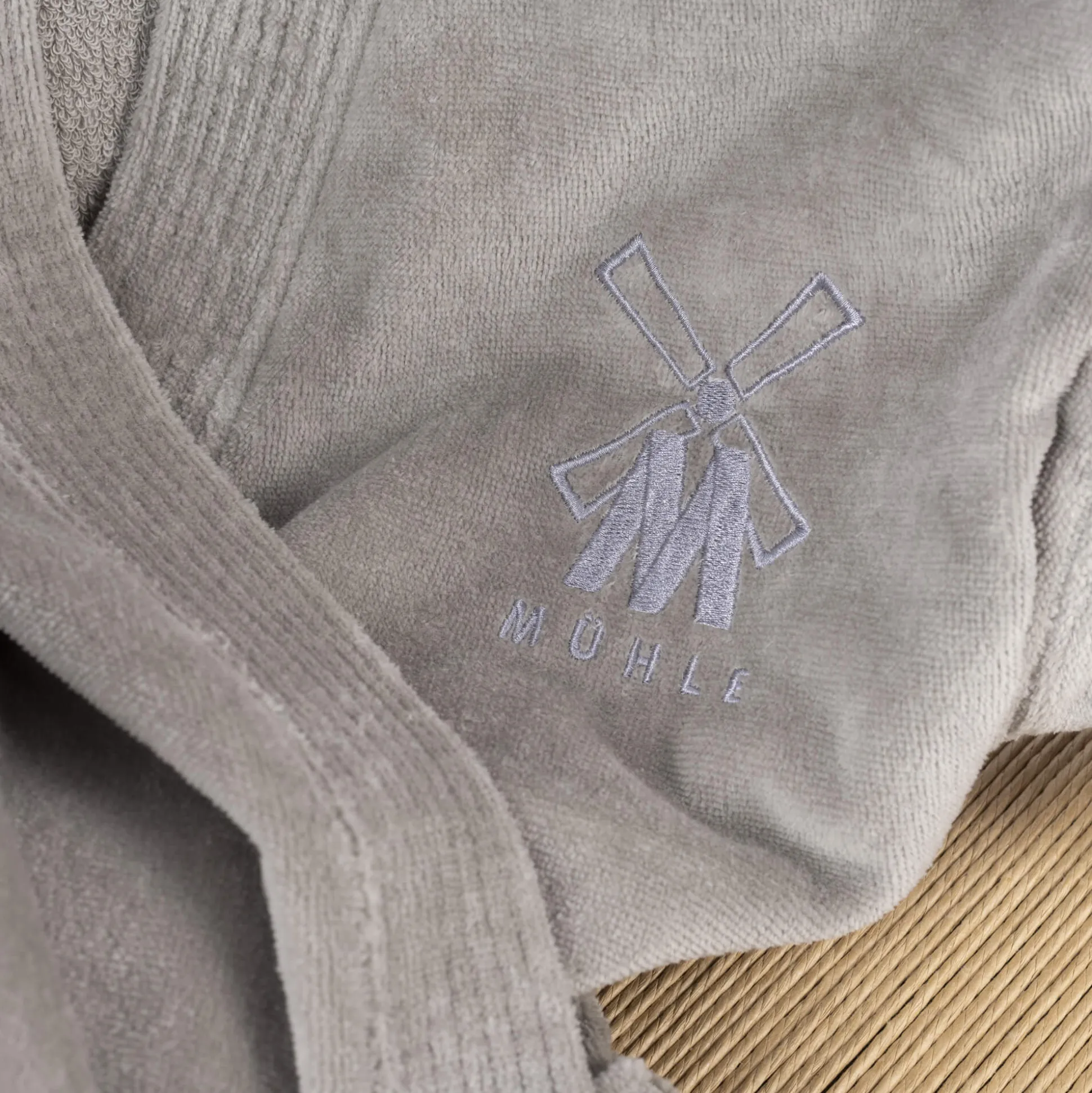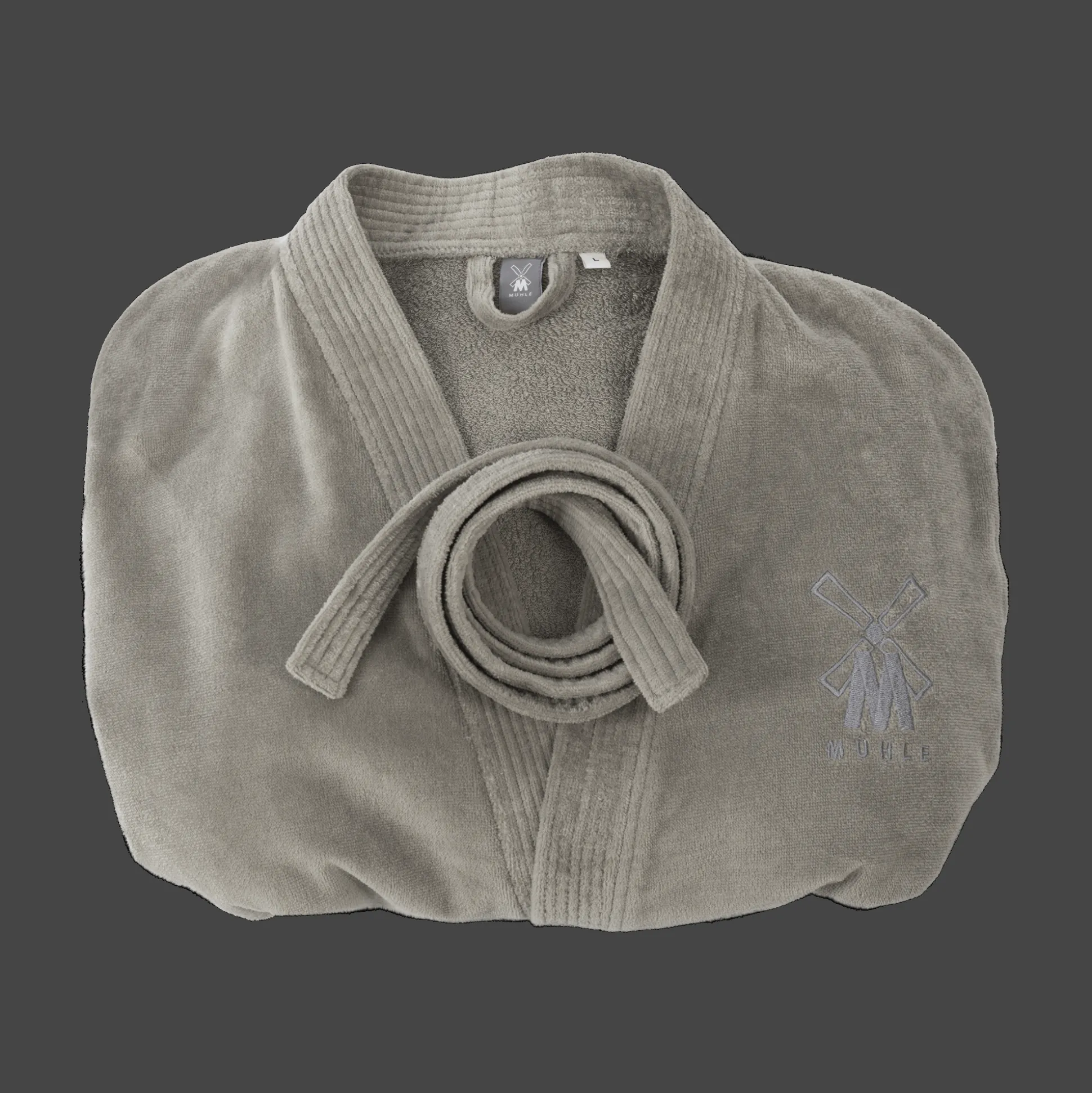 Der MÜHLE Bademantel ist der ideale Begleiter, egal ob Wellness oder tägliches Pflegeritual. Hergestellt aus reiner Baumwolle, sorgt die weiche, flauschige Textur für ein Gefühl von Entspannung und Behaglichkeit.Mit großzügigem Schnitt, Gürtel und Taschen ist er ebenso stylisch wie funktional. Das aufgestickte MÜHLE Logo ist fast schon ein Muss für Fans der Marke und Freunde der Rasurkultur.