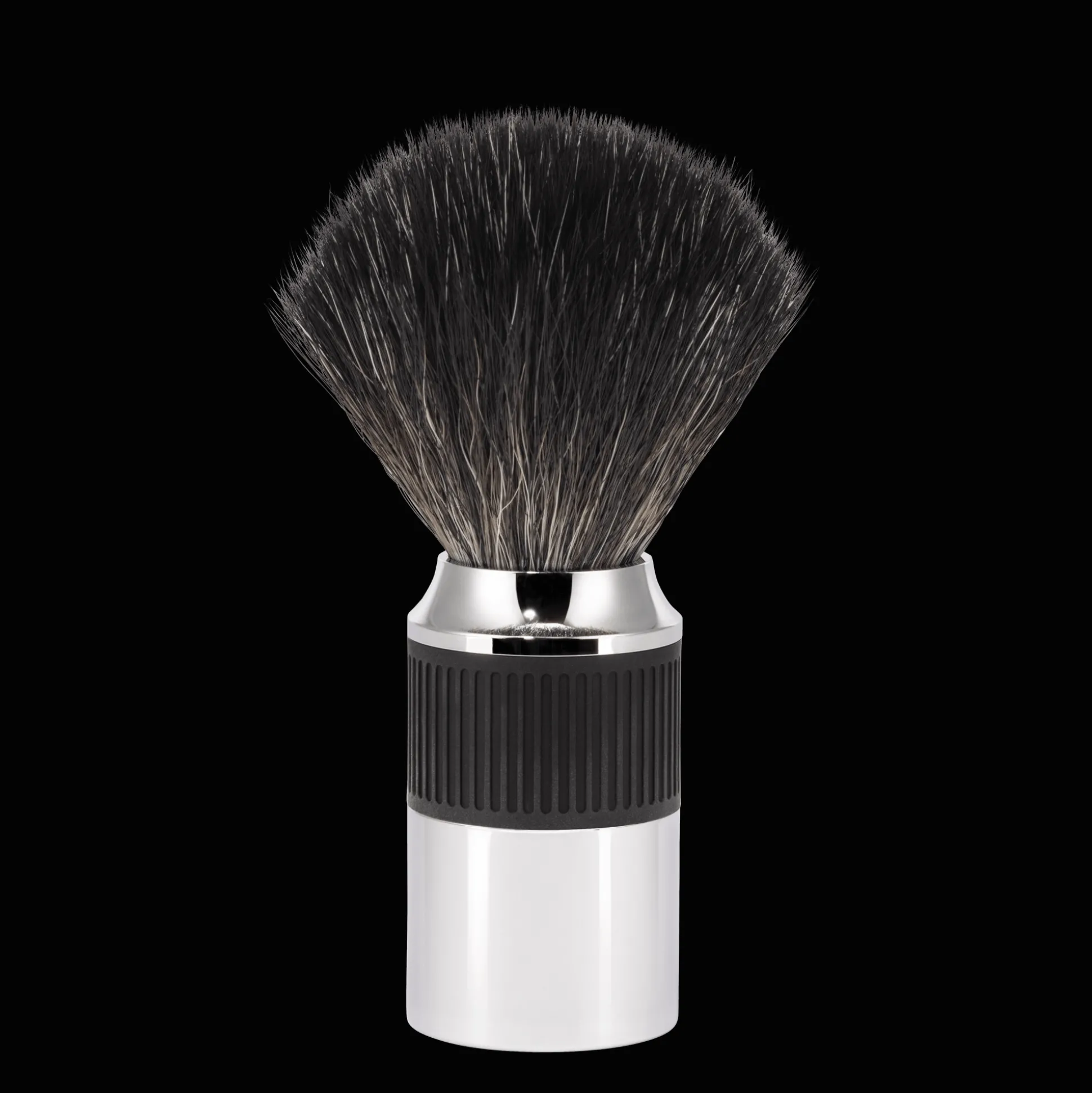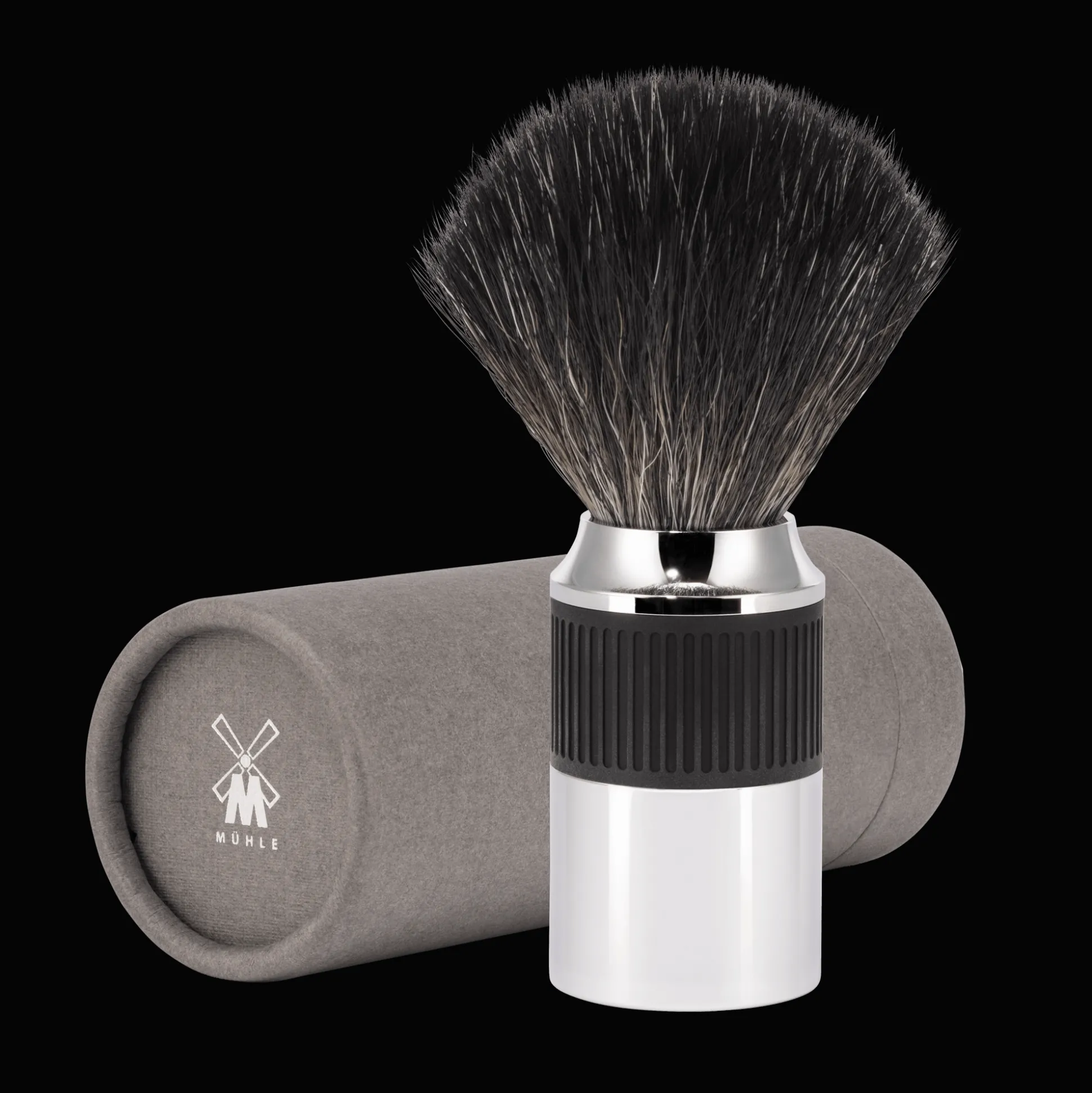Innovativ in die Zukunft: Mit ihrer dunklen Färbung, Weichheit und Qualität ist diese synthetische Faser die nachhaltige Antwort auf die Fragen unserer Zeit. Black Fibre ähnelt natürlichem Dachshaar, ist jedoch robuster und langlebiger, zugleich an den Spitzen etwas weicher als das Naturmaterial. Mit der Eigenentwicklung der Manufaktur MÜHLE lässt sich besonders cremiger Rasierschaum aufschlagen. Der Pflegeaufwand zum Reinigen und Trocknen ist deutlich geringer.