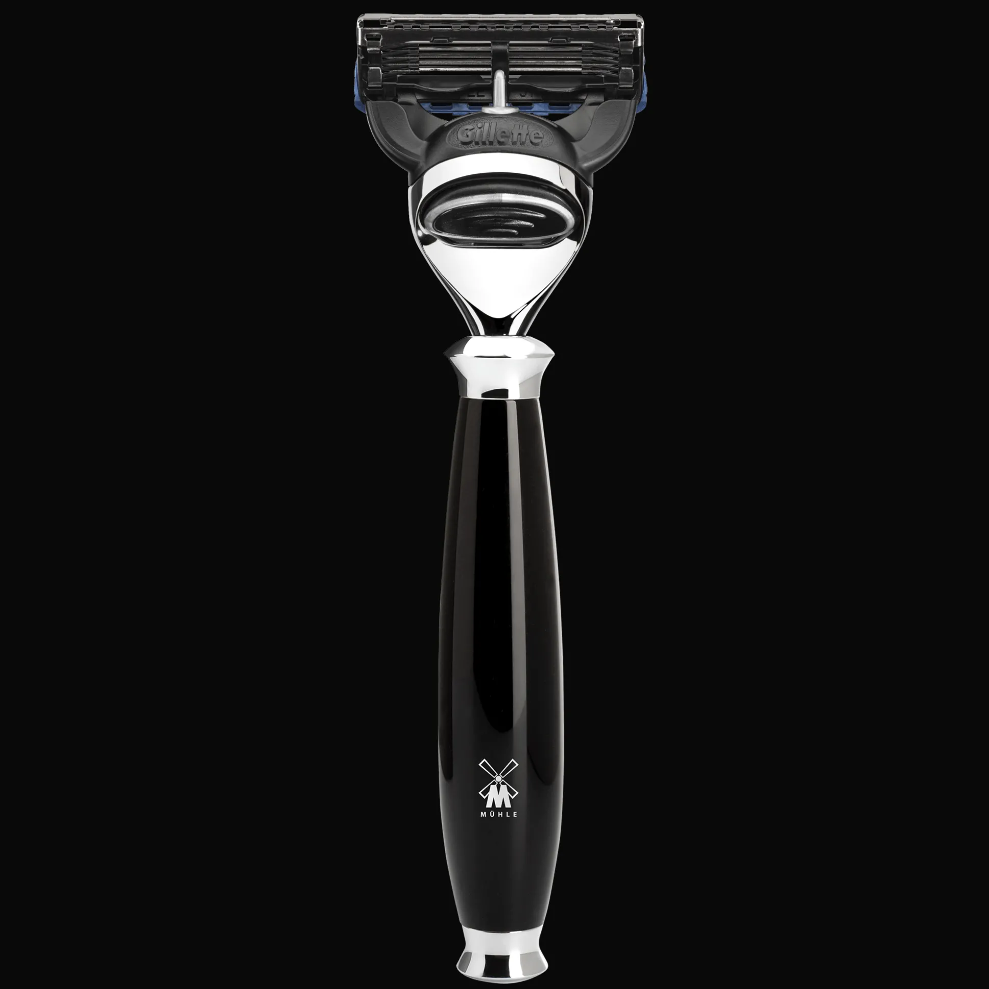 Sanft, sicher und zuverlässig: Die fünf übereinander liegenden Klingen von Gillette® Fusion™ ermöglichen eine sorgfältige und gründliche Rasur, die gleichzeitig behutsam zur Haut ist. Eine etwas weiter außen sitzende Klinge sorgt für exakte Konturen, Komfort-Lamellen für ein noch glatteres Ergebnis. Dieses System ist dank der einfachen und sicheren Handhabung ideal für Neueinsteiger und überall im Handel erhältlich. Alle MÜHLE Rasierer dieses Systems sind zudem kompatibel mit Gillette® SkinGuard, Gillette® Proglide und Gillette® Intimate.