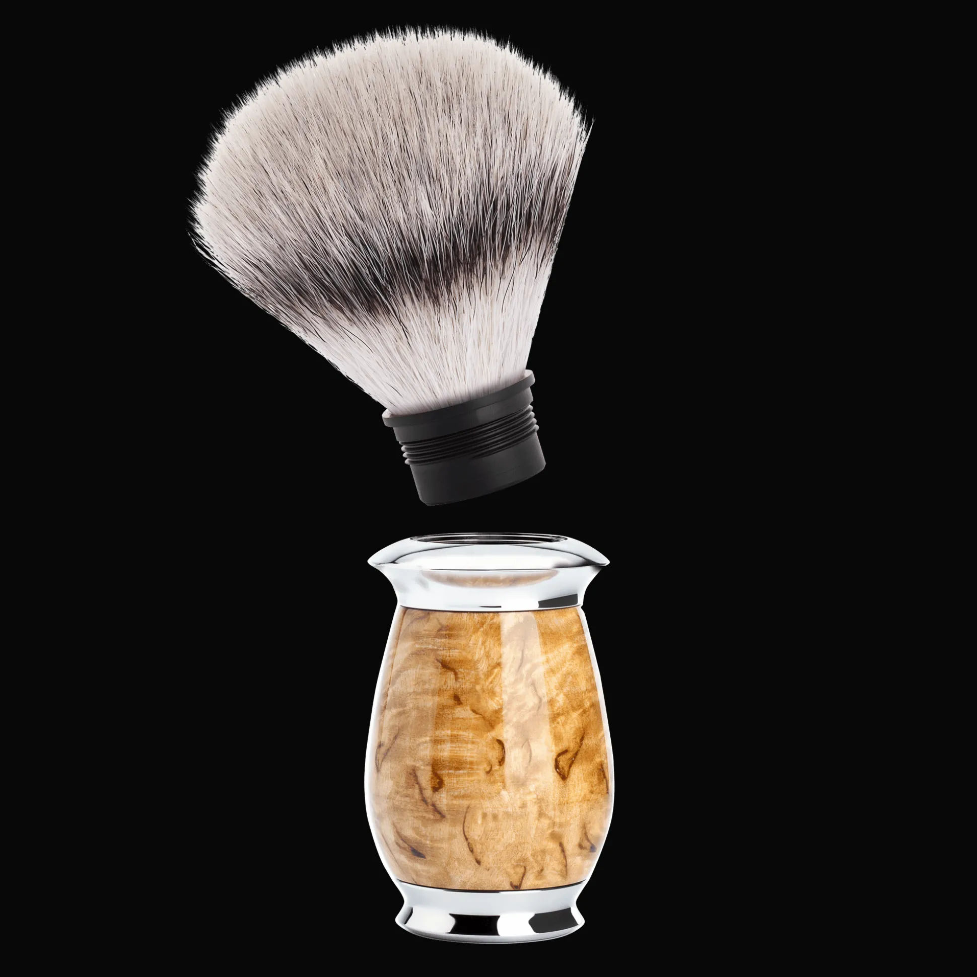 Diese langlebige Kunstfaser in Premiumqualität ist eine weltweite Innovation und unser Beweis, dass die Kunst die Natur übertreffen kann. Die auch für Veganer geeigneten, synthetisch produzierten Haare sind sehr pflegeleicht und trocknen rascher als jedes Naturmaterial. Die Fasern werden von Hand verarbeitet und sind an den Spitzen besonders weich. Gleichzeitig ist der untere Pinselbereich fester und bietet selbst im nassen Zustand genügend Rückgrat für einen angenehmen Massageeffekt. Zudem garantiert Silvertip Fibre® auch bei Kleinstmengen an Rasierseife oder -creme einen üppigen Schaum.