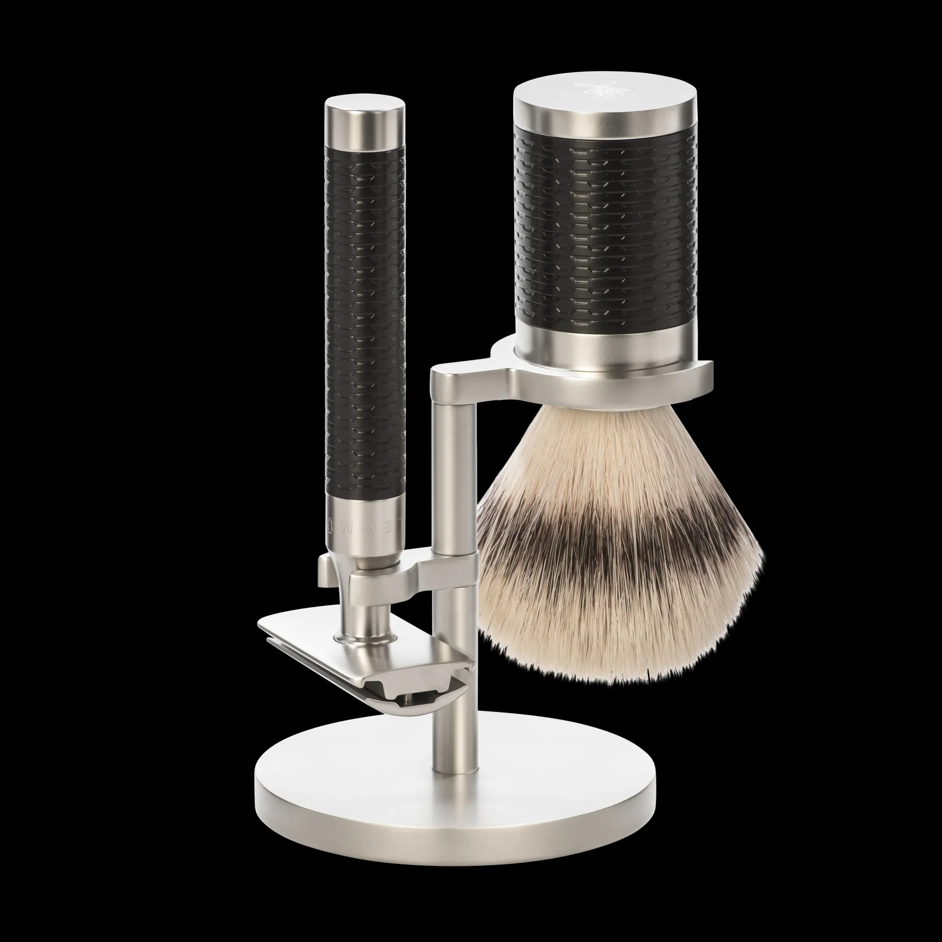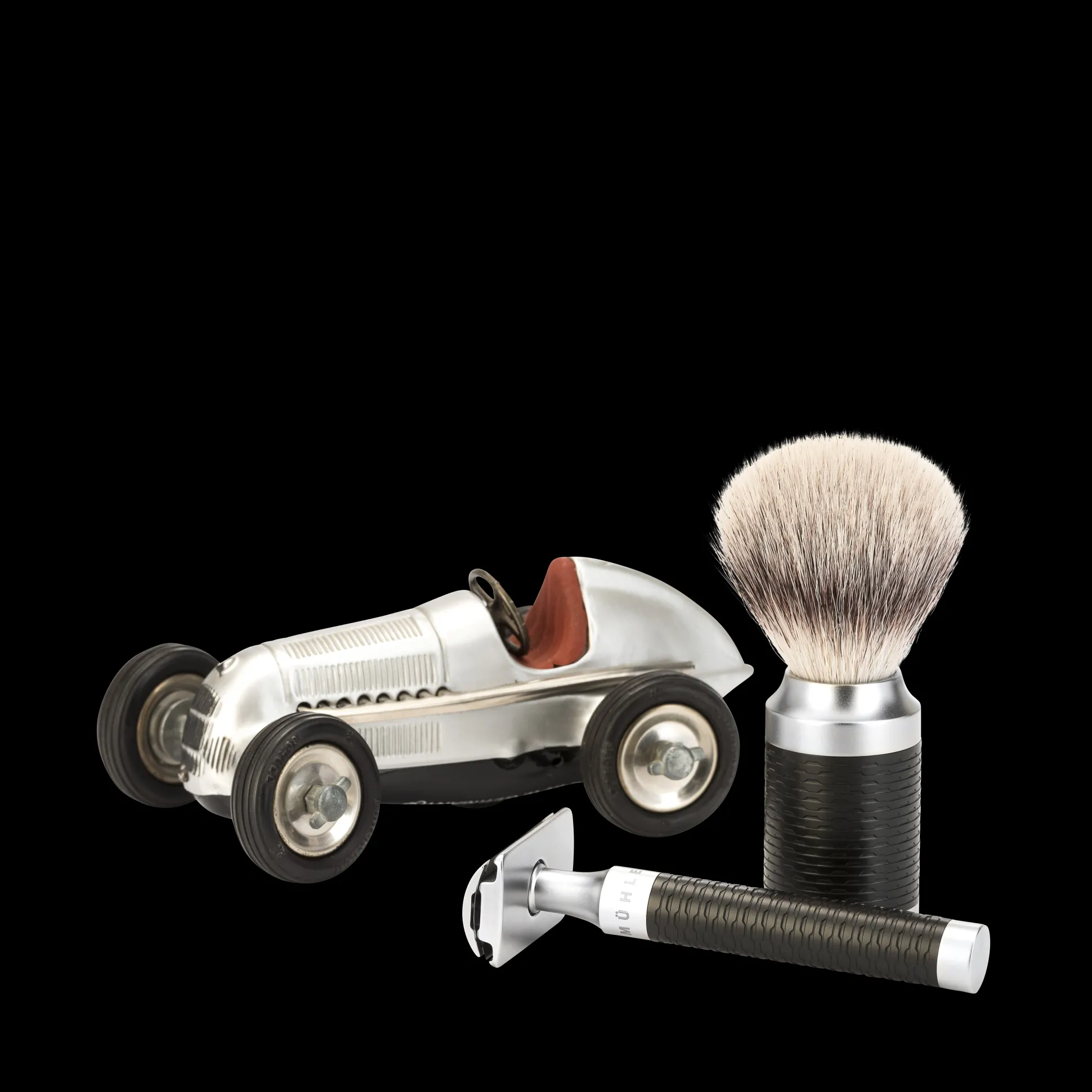 Diese langlebige Kunstfaser in Premiumqualität ist eine weltweite Innovation und unser Beweis, dass die Kunst die Natur übertreffen kann. Die auch für Veganer geeigneten, synthetisch produzierten Haare sind sehr pflegeleicht und trocknen rascher als jedes Naturmaterial. Die Fasern werden von Hand verarbeitet und sind an den Spitzen besonders weich. Gleichzeitig ist der untere Pinselbereich fester und bietet selbst im nassen Zustand genügend Rückgrat für einen angenehmen Massageeffekt. Zudem garantiert Silvertip Fibre® auch bei Kleinstmengen an Rasierseife oder -creme einen üppigen Schaum.