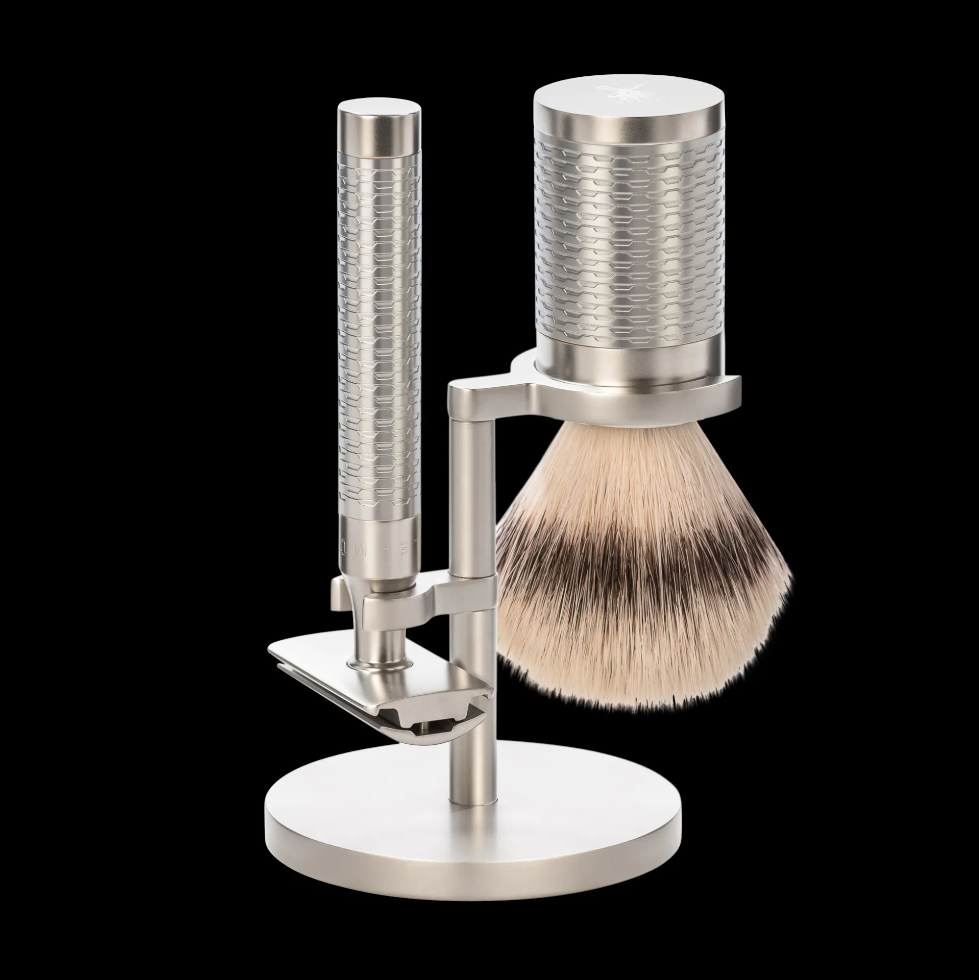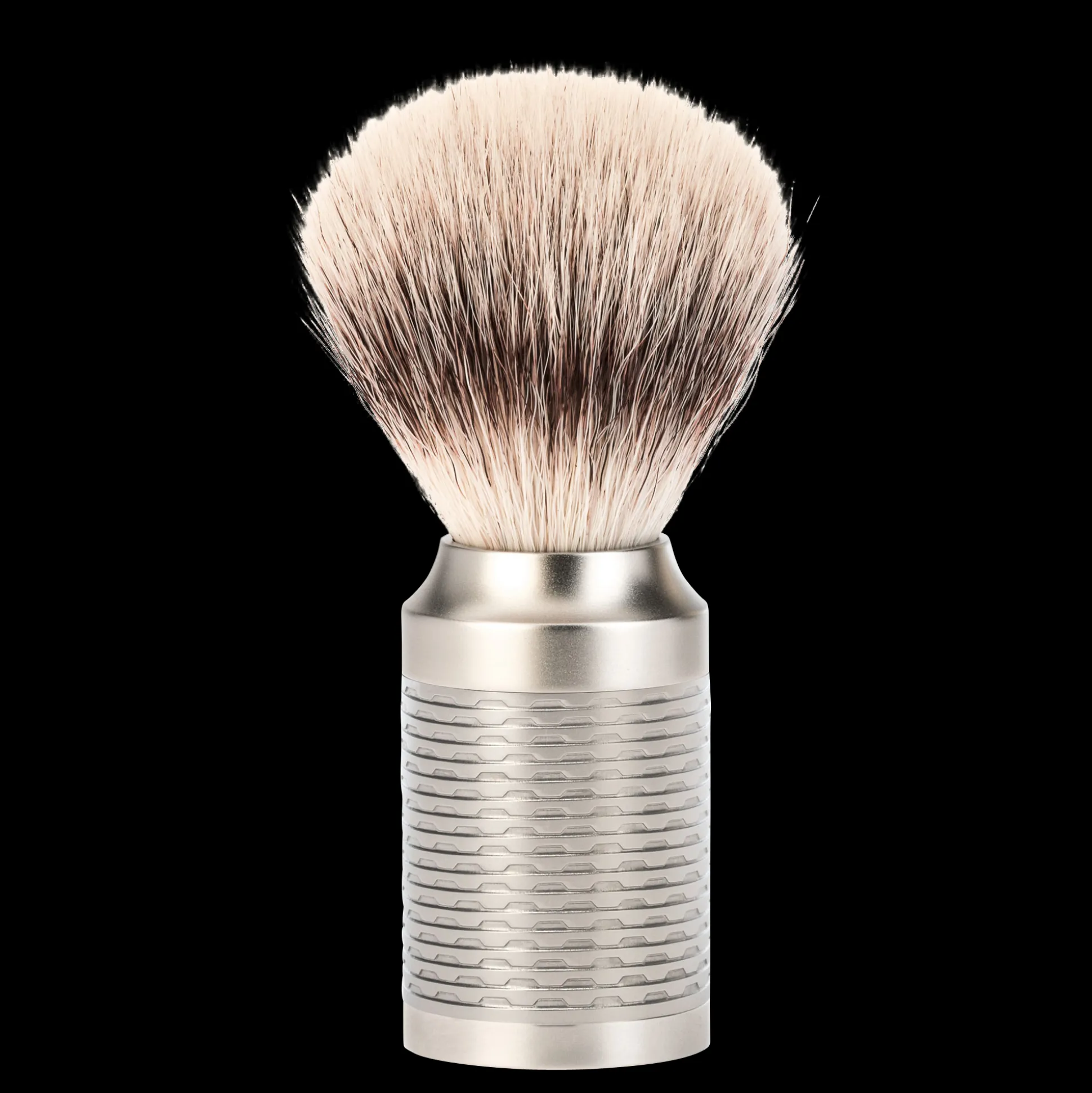 Diese langlebige Kunstfaser in Premiumqualität ist eine weltweite Innovation und unser Beweis, dass die Kunst die Natur übertreffen kann. Die auch für Veganer geeigneten, synthetisch produzierten Haare sind sehr pflegeleicht und trocknen rascher als jedes Naturmaterial. Die Fasern werden von Hand verarbeitet und sind an den Spitzen besonders weich. Gleichzeitig ist der untere Pinselbereich fester und bietet selbst im nassen Zustand genügend Rückgrat für einen angenehmen Massageeffekt. Zudem garantiert Silvertip Fibre® auch bei Kleinstmengen an Rasierseife oder -creme einen üppigen Schaum.