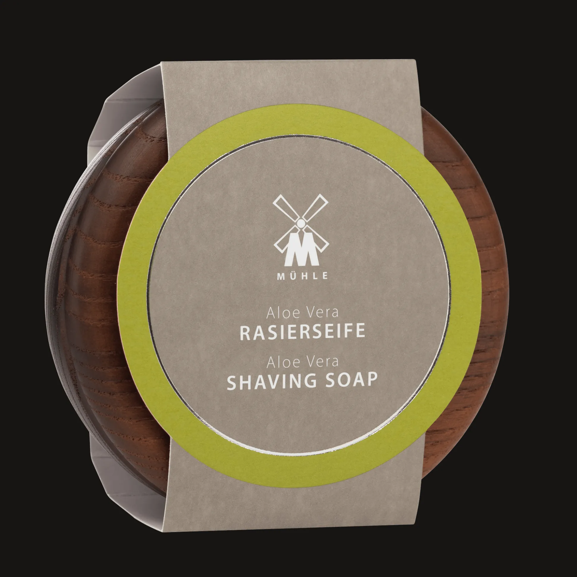 Rasierseife Aloe Vera in dekorativer Holzschale aus Thermo-Esche