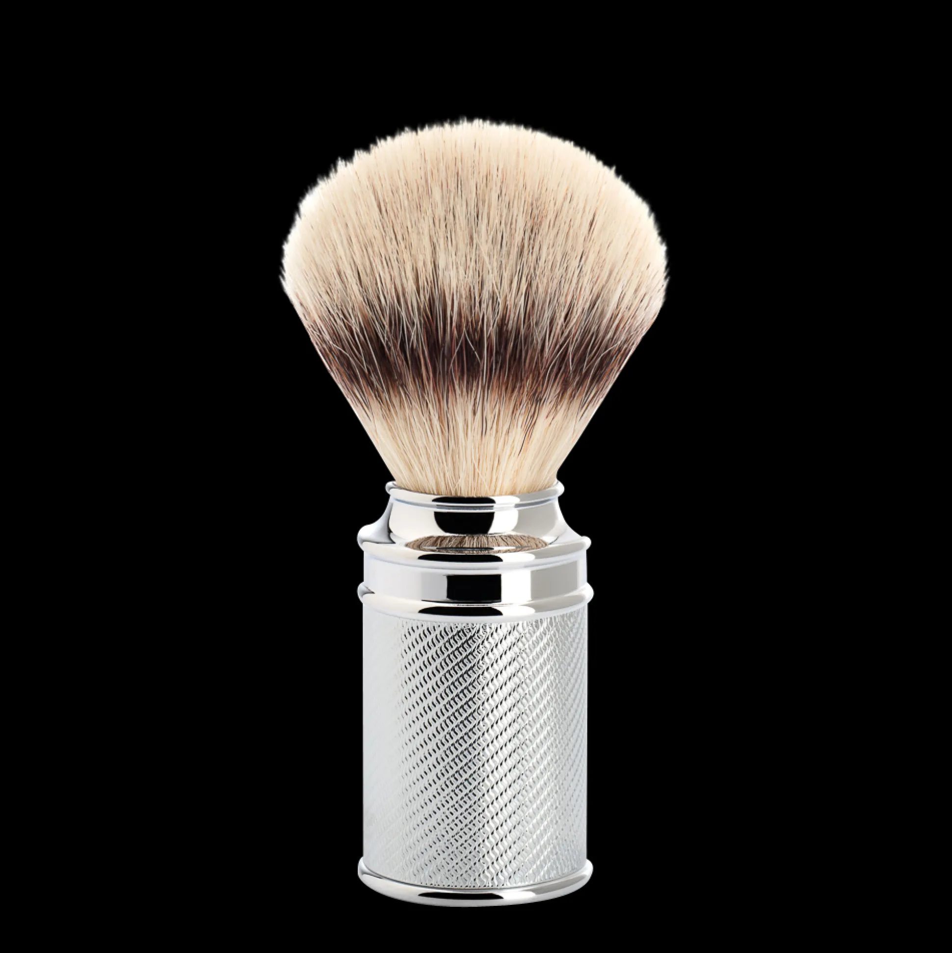 Diese langlebige Kunstfaser in Premiumqualität ist eine weltweite Innovation und unser Beweis, dass die Kunst die Natur übertreffen kann. Die auch für Veganer geeigneten, synthetisch produzierten Haare sind sehr pflegeleicht und trocknen rascher als jedes Naturmaterial. Die Fasern werden von Hand verarbeitet und sind an den Spitzen besonders weich. Gleichzeitig ist der untere Pinselbereich fester und bietet selbst im nassen Zustand genügend Rückgrat für einen angenehmen Massageeffekt. Zudem garantiert Silvertip Fibre® auch bei Kleinstmengen an Rasierseife oder -creme einen üppigen Schaum.