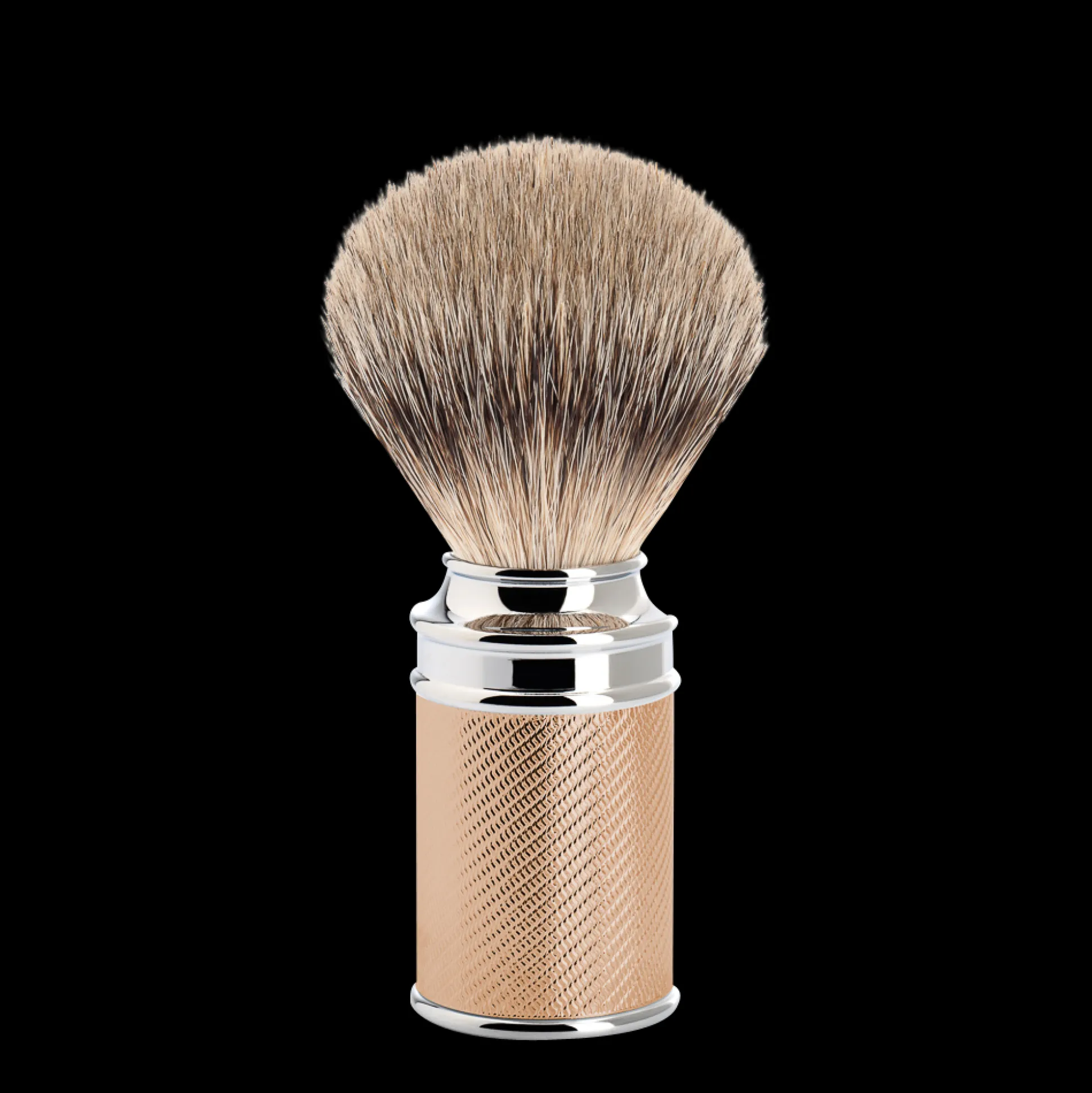 Bewährter Klassiker und unangefochtene Spitze der Naturhaarpalette: Silberspitz Dachszupf ist besonders weich und flexibel und wird bei MÜHLE ausschließlich von Hand verarbeitet. Edle Erkennungszeichen sind die silbern schimmernde Farbe und ein schwarzes Band im Verlauf jedes einzelnen Haares, das Kenner als Spiegel bezeichnen. Das feine, konisch auslaufende Haar nimmt besonders viel Wasser auf und garantiert das Aufschlagen eines dichten, cremigen Schaumes.