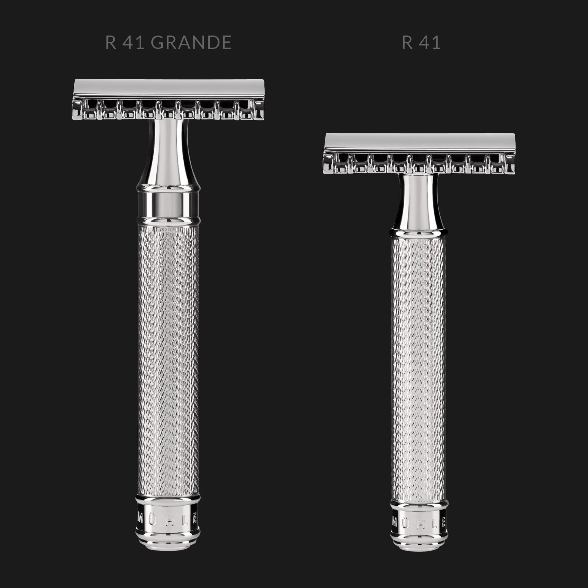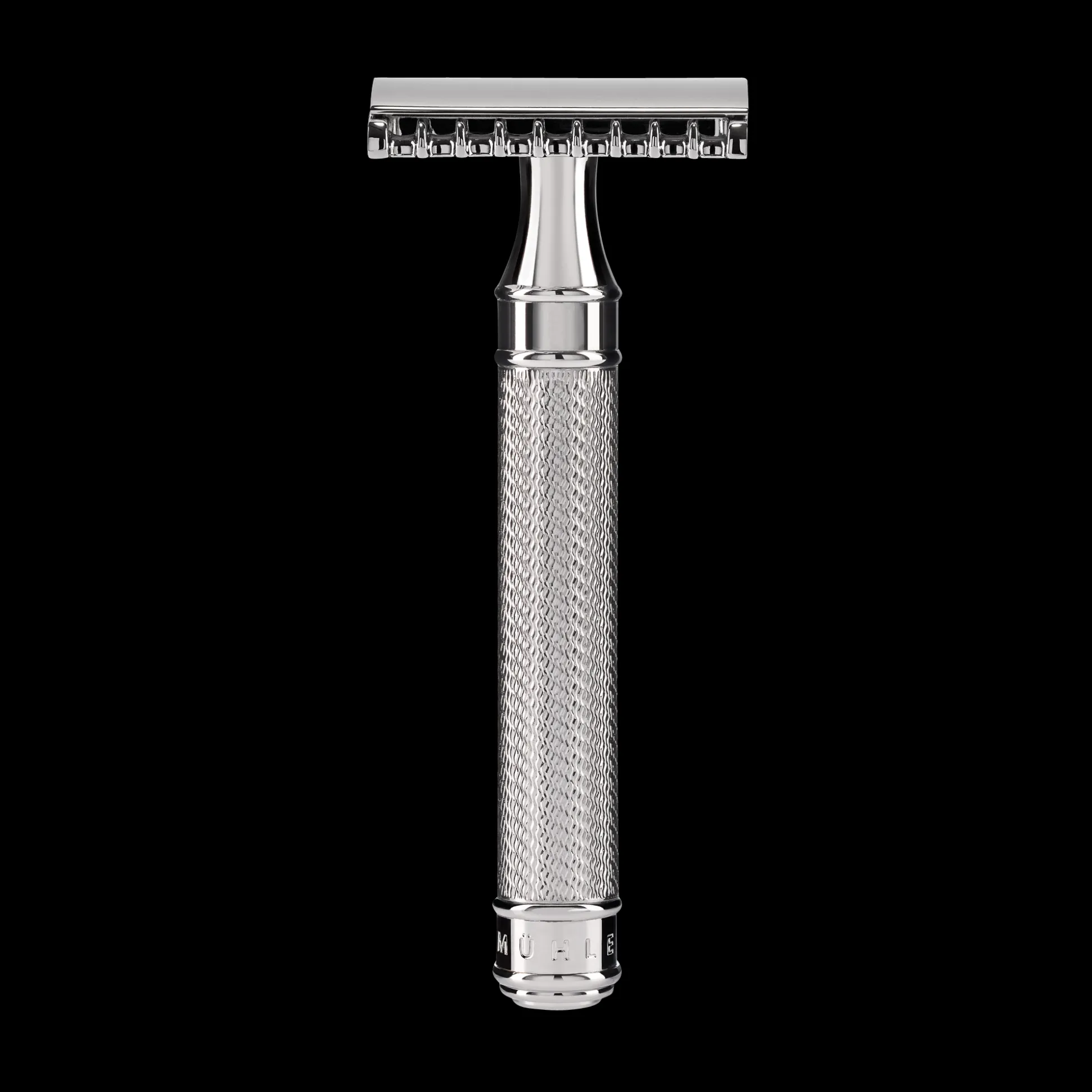Noch traditioneller ist nur das Rasiermesser: Für den MÜHLE Rasierhobel mit offenem Zahnkamm bedarf es eindeutig Fingerspitzengefühl. Die vergleichsweise breite Zahnung und eine flache Positionierung der Klinge bewirken eine äußerst direkte und offensive Rasur — drahtigere und längere Barthaare lassen sich somit leichter erfassen und abschneiden. Für Fortgeschrittene und Profis, die beim täglichen Pflegeritual genau wissen, was sie tun.