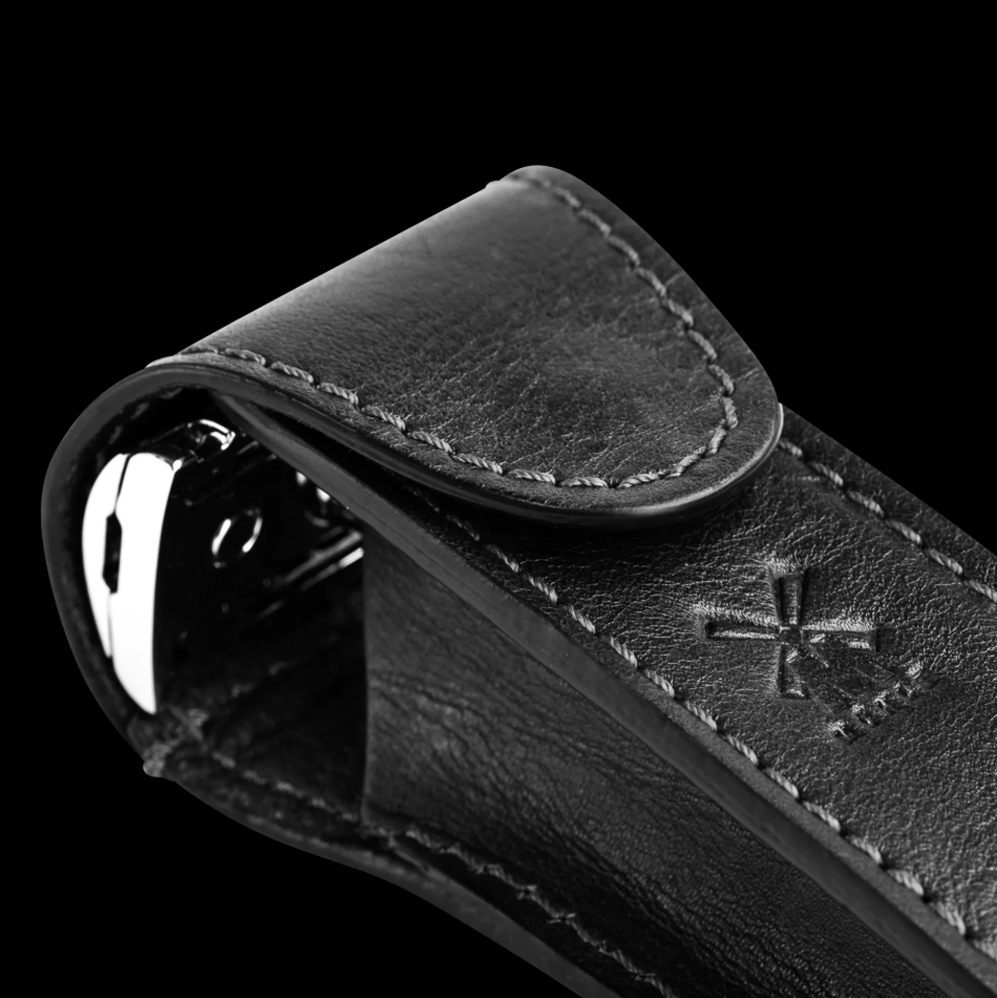 Hochwertiges Lederetui in braun zum Verstauen des traditionellen Rasierhobels.