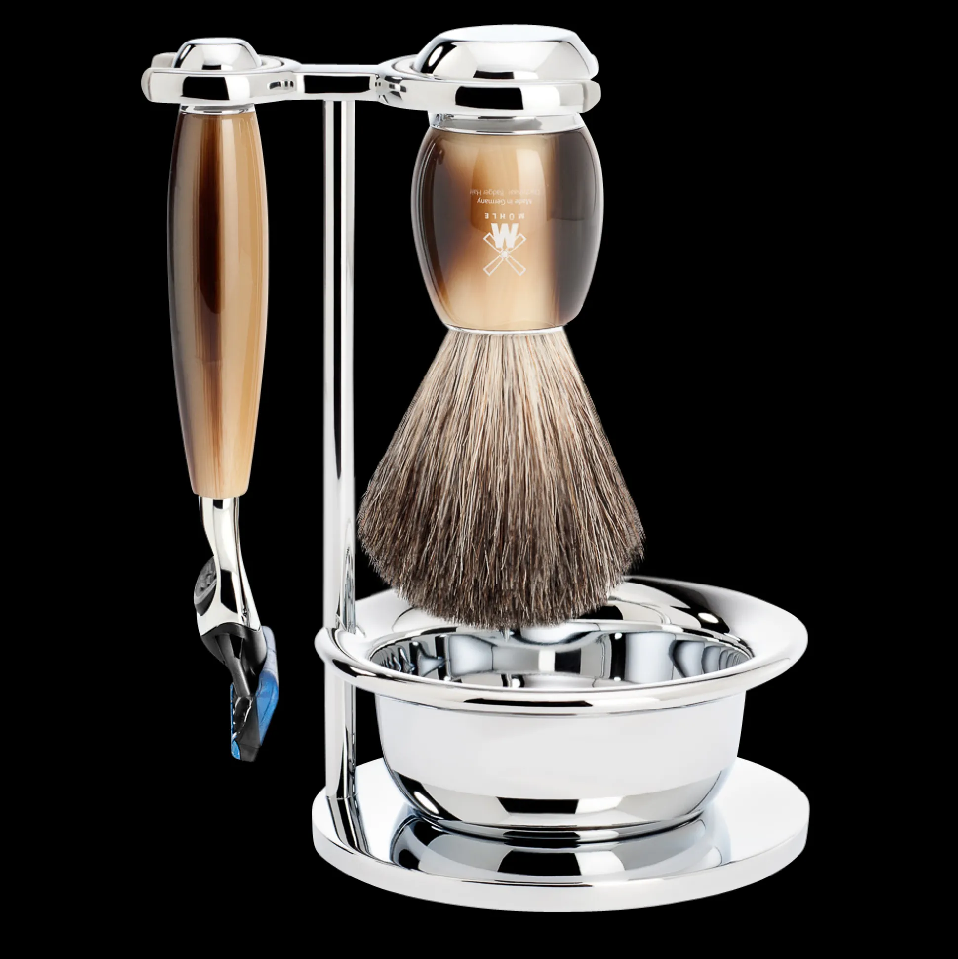 Sanft, sicher und zuverlässig: Die fünf übereinander liegenden Klingen von Gillette® Fusion™ ermöglichen eine sorgfältige und gründliche Rasur, die gleichzeitig behutsam zur Haut ist. Eine etwas weiter außen sitzende Klinge sorgt für exakte Konturen, Komfort-Lamellen für ein noch glatteres Ergebnis. Dieses System ist dank der einfachen und sicheren Handhabung ideal für Neueinsteiger und überall im Handel erhältlich. Alle MÜHLE Rasierer dieses Systems sind zudem kompatibel mit Gillette® SkinGuard, Gillette® Proglide und Gillette® Intimate.