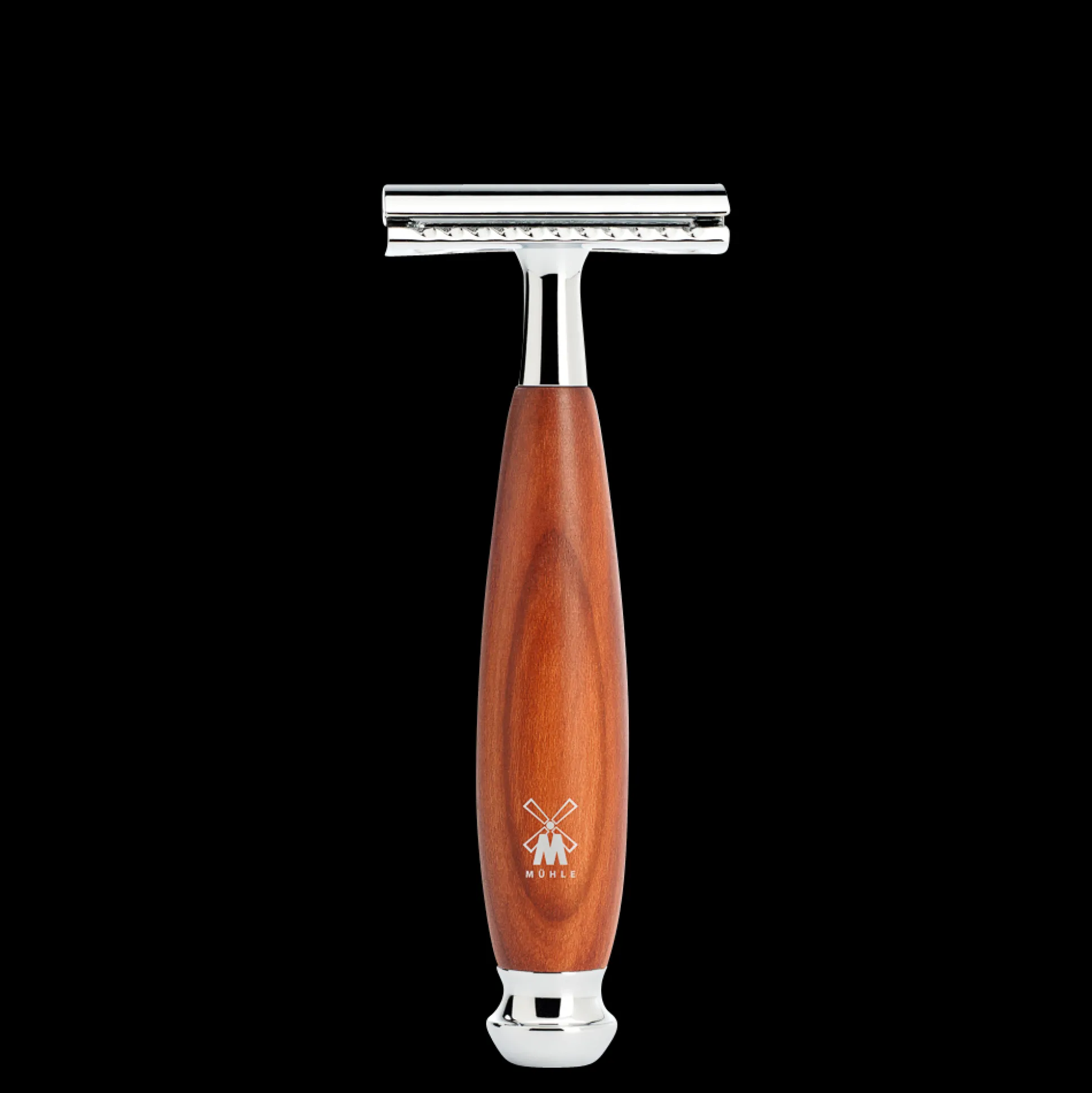 Edles Design und mechanische Präzision. Der MÜHLE Rasierhobel mit geschlossenem Kamm verspricht eine gründliche und zugleich schonende Rasur. Anders als beim Hobel mit offenem Kamm weist die Schaumkante keine Zahnung auf. In Kombination mit einem etwas steileren Klingenwinkel ermöglicht dieser Hobel eine sehr sanfte Rasurtechnik, die auch für Einsteiger mit ein wenig Übung bestens geeignet ist. Feinste Konturen und klare Linien etwa am Bartansatz sind dennoch Ehrensache.