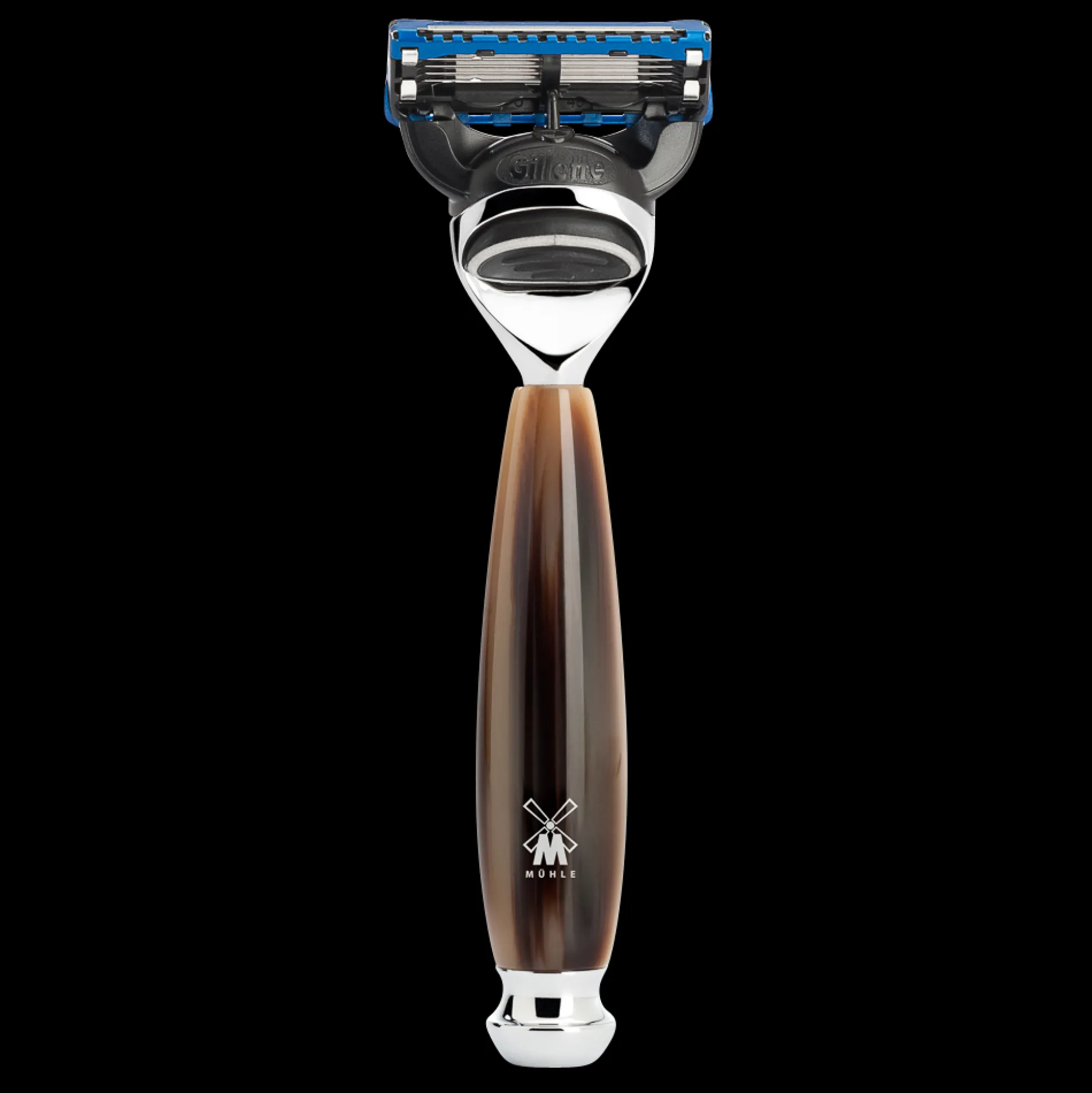 Sanft, sicher und zuverlässig: Die fünf übereinander liegenden Klingen von Gillette® Fusion™ ermöglichen eine sorgfältige und gründliche Rasur, die gleichzeitig behutsam zur Haut ist. Eine etwas weiter außen sitzende Klinge sorgt für exakte Konturen, Komfort-Lamellen für ein noch glatteres Ergebnis. Dieses System ist dank der einfachen und sicheren Handhabung ideal für Neueinsteiger und überall im Handel erhältlich. Alle MÜHLE Rasierer dieses Systems sind zudem kompatibel mit Gillette® SkinGuard, Gillette® Proglide und Gillette® Intimate.