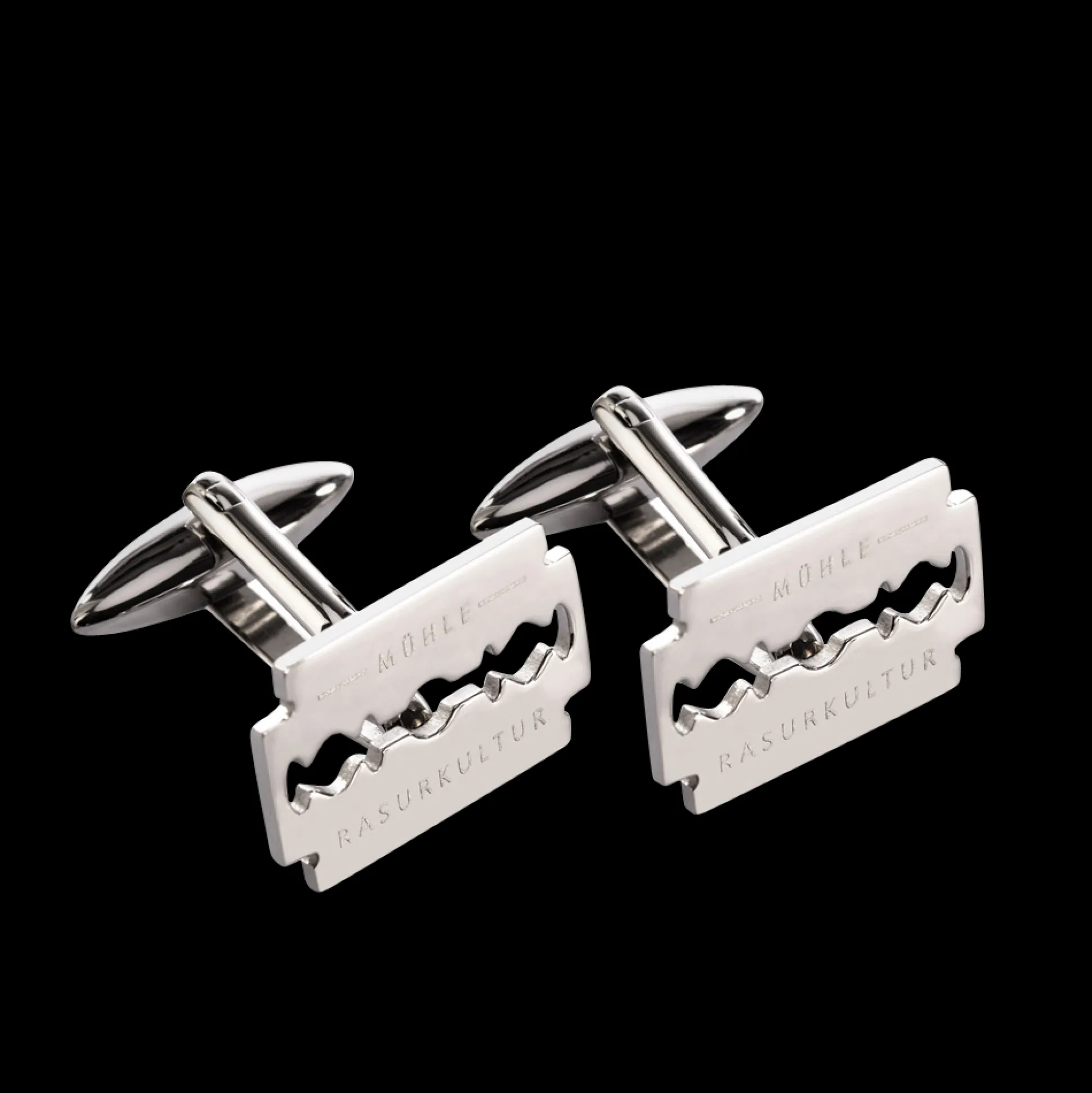 Beweisen Sie auch jenseits der Rasur mit MÜHLE Produkten Stil: einen Kugelschreiber im Design des R 89 sowie einen Schlüsselanhänger in Klingenform haben wir bereits im Sortiment. Nun kommen die MÜHLE Manschettenknöpfe dazu für den modernen Mann.