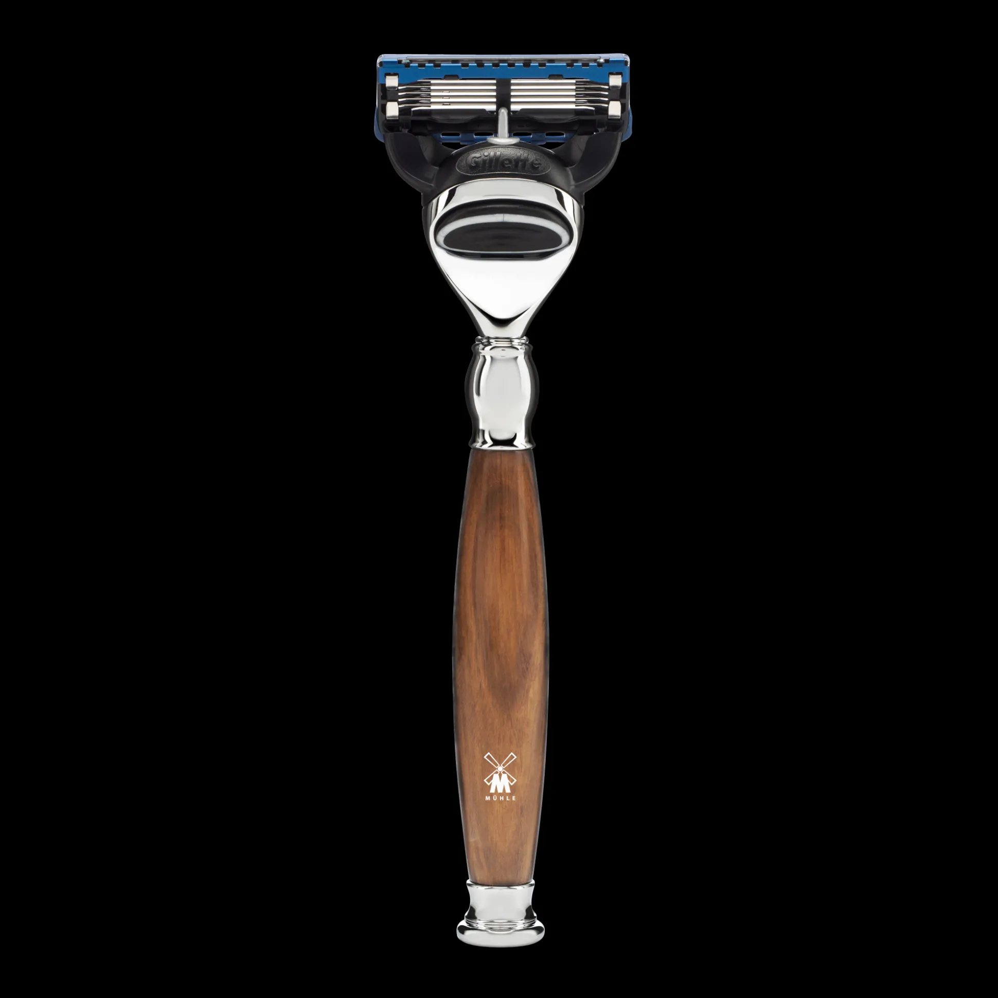 Sanft, sicher und zuverlässig: Die fünf übereinander liegenden Klingen von Gillette® Fusion™ ermöglichen eine sorgfältige und gründliche Rasur, die gleichzeitig behutsam zur Haut ist. Eine etwas weiter außen sitzende Klinge sorgt für exakte Konturen, Komfort-Lamellen für ein noch glatteres Ergebnis. Dieses System ist dank der einfachen und sicheren Handhabung ideal für Neueinsteiger und überall im Handel erhältlich. Alle MÜHLE Rasierer dieses Systems sind zudem kompatibel mit Gillette® SkinGuard, Gillette® Proglide und Gillette® Intimate.