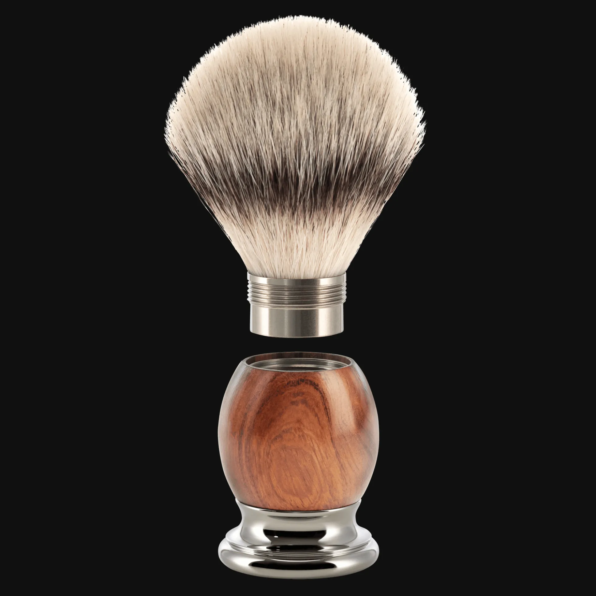 Diese langlebige Kunstfaser in Premiumqualität ist eine weltweite Innovation und unser Beweis, dass die Kunst die Natur übertreffen kann. Die auch für Veganer geeigneten, synthetisch produzierten Haare sind sehr pflegeleicht und trocknen rascher als jedes Naturmaterial. Die Fasern werden von Hand verarbeitet und sind an den Spitzen besonders weich. Gleichzeitig ist der untere Pinselbereich fester und bietet selbst im nassen Zustand genügend Rückgrat für einen angenehmen Massageeffekt. Zudem garantiert Silvertip Fibre® auch bei Kleinstmengen an Rasierseife oder -creme einen üppigen Schaum.
