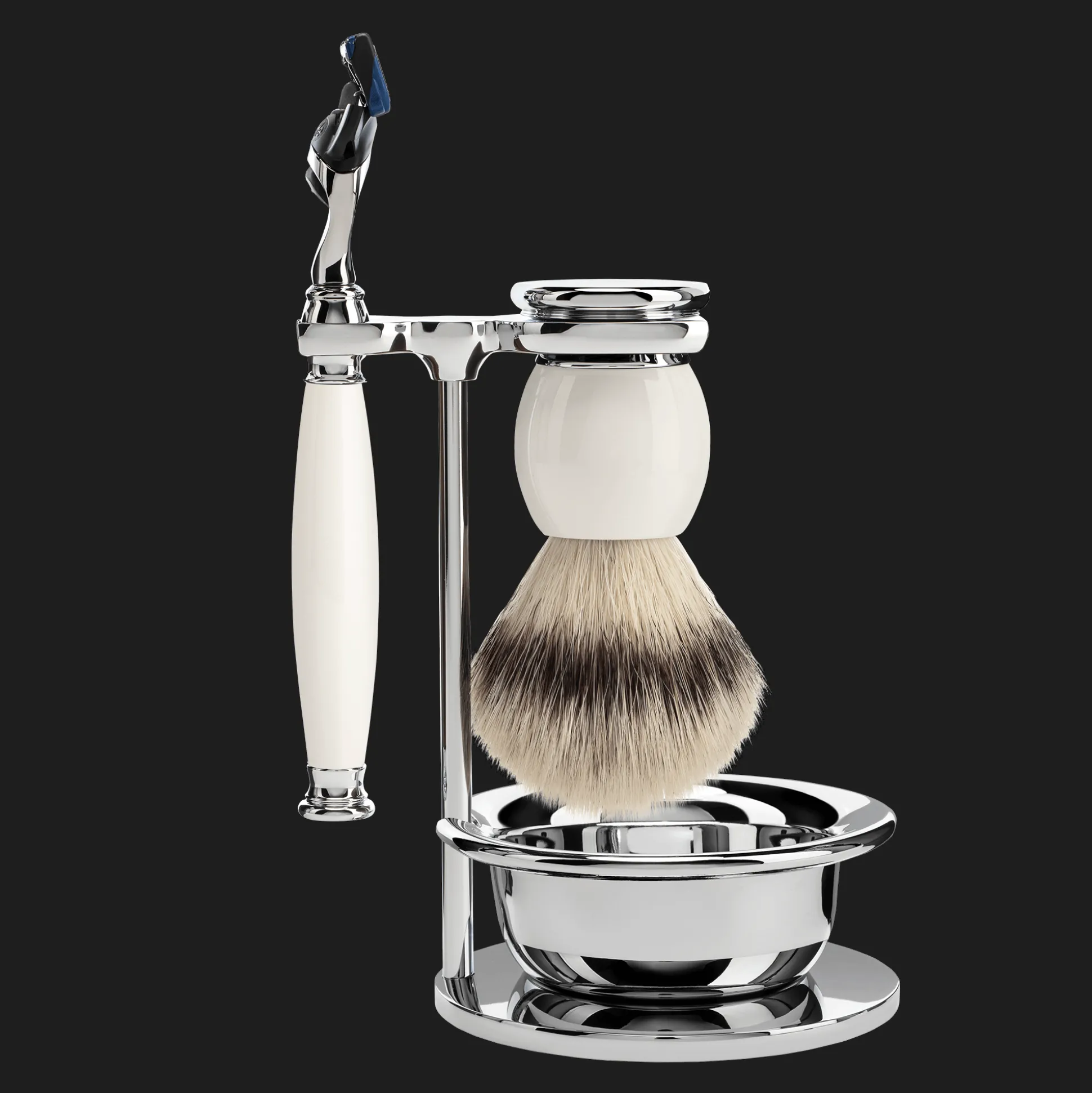 Sanft, sicher und zuverlässig: Die fünf übereinander liegenden Klingen von Gillette® Fusion™ ermöglichen eine sorgfältige und gründliche Rasur, die gleichzeitig behutsam zur Haut ist. Eine etwas weiter außen sitzende Klinge sorgt für exakte Konturen, Komfort-Lamellen für ein noch glatteres Ergebnis. Dieses System ist dank der einfachen und sicheren Handhabung ideal für Neueinsteiger und überall im Handel erhältlich. Alle MÜHLE Rasierer dieses Systems sind zudem kompatibel mit Gillette® SkinGuard, Gillette® Proglide und Gillette® Intimate.