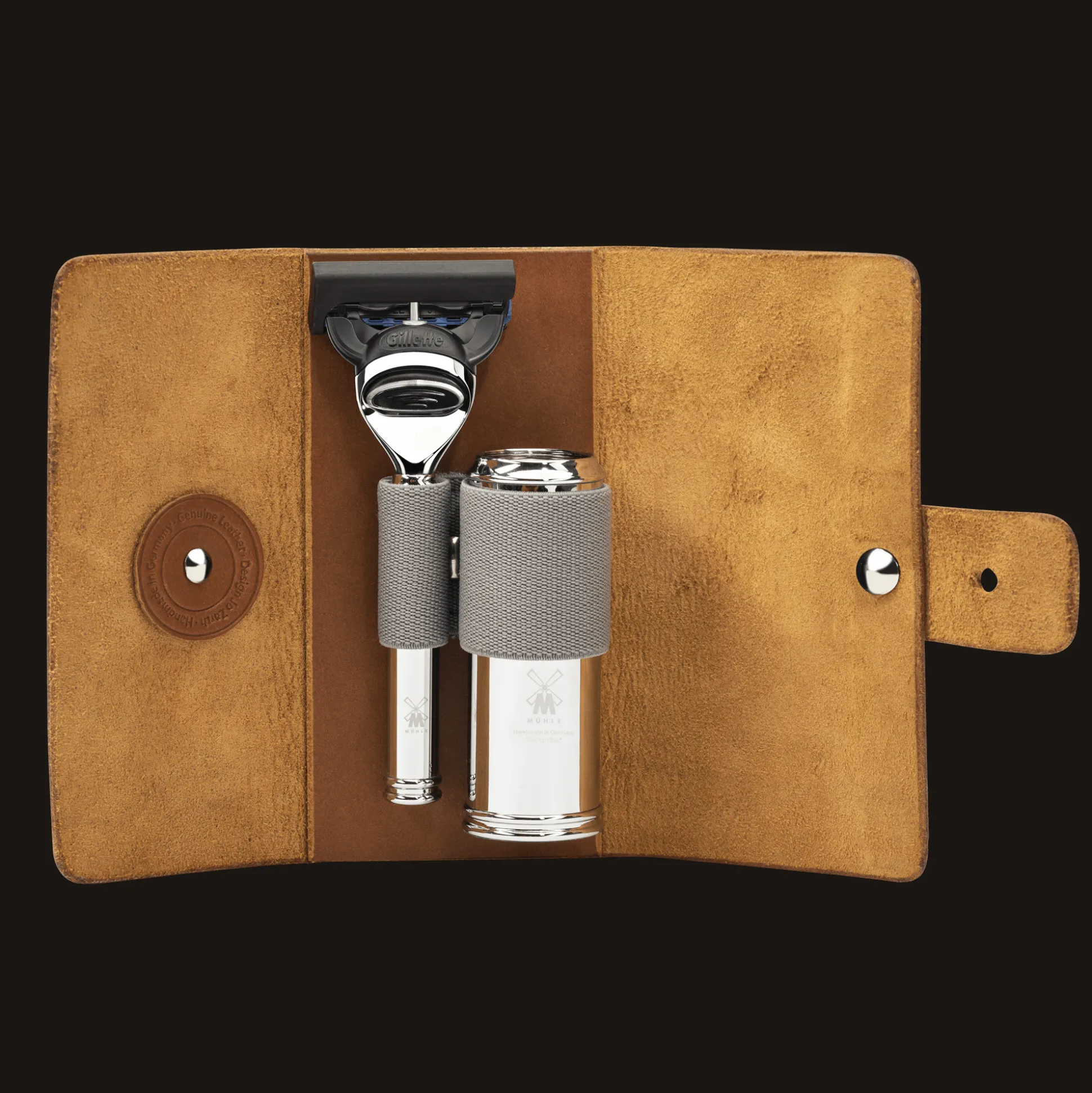 Pflegeritual to go: Mit den Reisebegleitern von MÜHLE ist man für jede anstehende Geschäftsreise, einen aufregenden Städtetrip oder entspannten Familienurlaub bestens gerüstet. Ob herausschraubbarer Rasierpinsel oder kompakt gestalteter Rasierer — formschön, funktional und leicht sind die Reiseaccessoires von MÜHLE. Und selbstverständlich äußerst strapazierfähig. Pinselgehäuse und Rasierergriffe werden aus eloxiertem Aluminium in silber und schwarz oder aus verchromten Metall gefertigt. Und auch das pflegeleichte Pinselhaar Silvertip Fibre® macht alles mit und trocknet rasch. Damit kann das Rasierset sofort wieder in den von Hand gefertigten Etuis aus vegetabil gegerbten Leder verstaut werden.