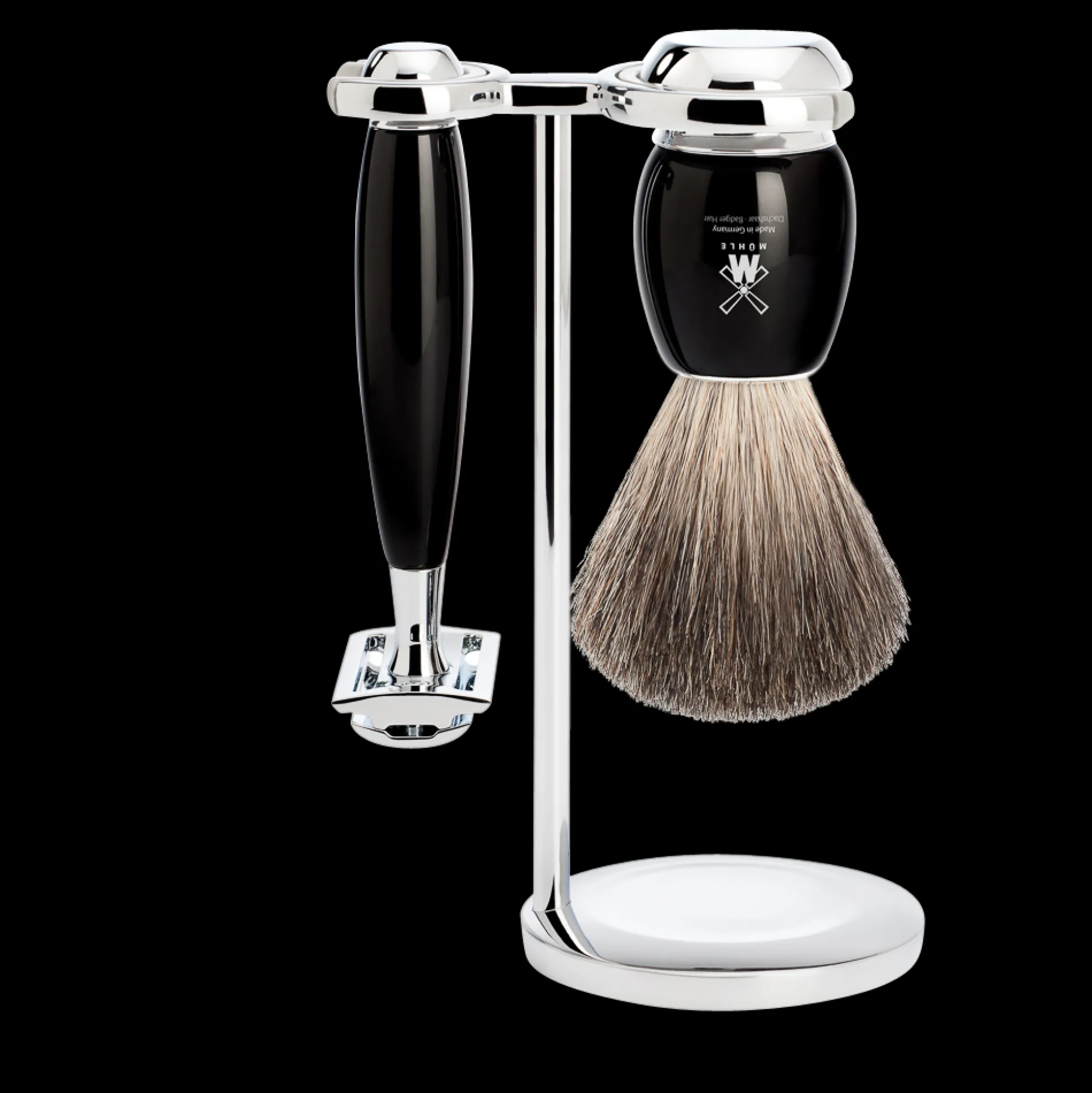 Klassische Form neu gedacht. Die Serie VIVO ist das zeitgemäße Update der Urform eines Rasierpinsels. Die Griffe zeigen die archetypische, bauchige Wölbung. Der gegenläufig geschwungene Sockel aus hochglänzendem Chrom weckt Erinnerungen an die traditionelle Rasurkultur und garantiert zugleich den sicheren Sitz im speziell entwickelten Halter mit Kunststoffeinsatz. Den neu interpretierten Klassiker fertigt MÜHLE aus Edelharz und Pflaumenholz.